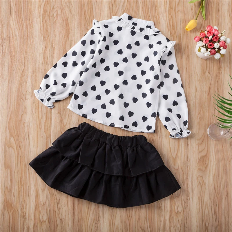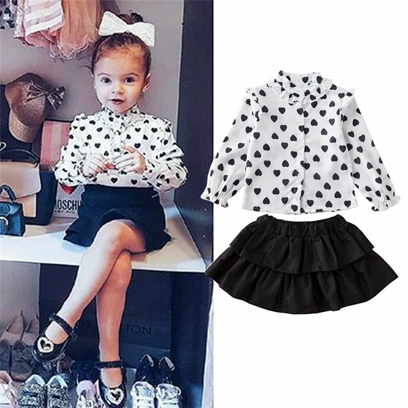 Новый комплект одежды из 2 предметов для маленьких девочек, летняя блузка в горошек с длинными рукавами Топы + юбка с оборками Детский костюм, 2020