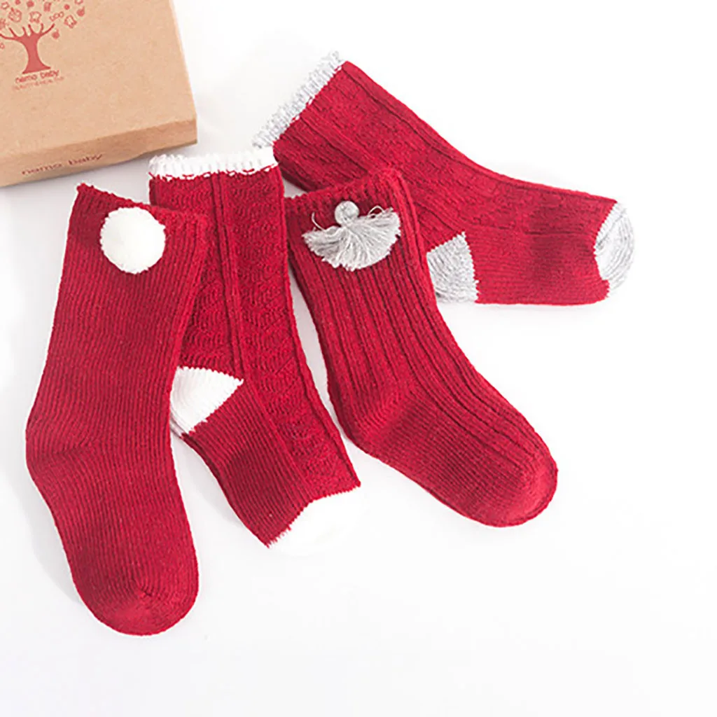 0-3Years Old Children Cartoon Cotton Middle Socks New Year Gift Box 4 Piece Set