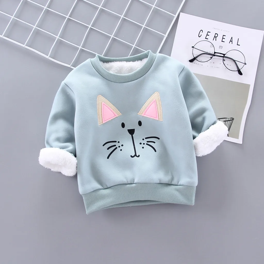 Теплая толстовка из плотного флиса с рисунком для маленьких мальчиков и девочек, пуловер, топы