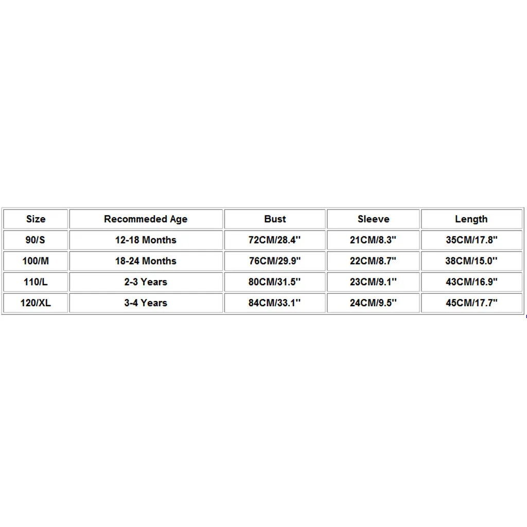 | Размер | Рекомендуемый возраст | Обхват груди | Рукава | Длина |