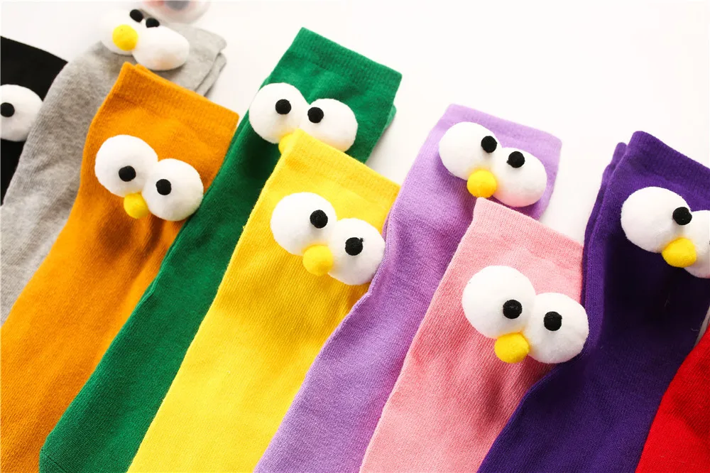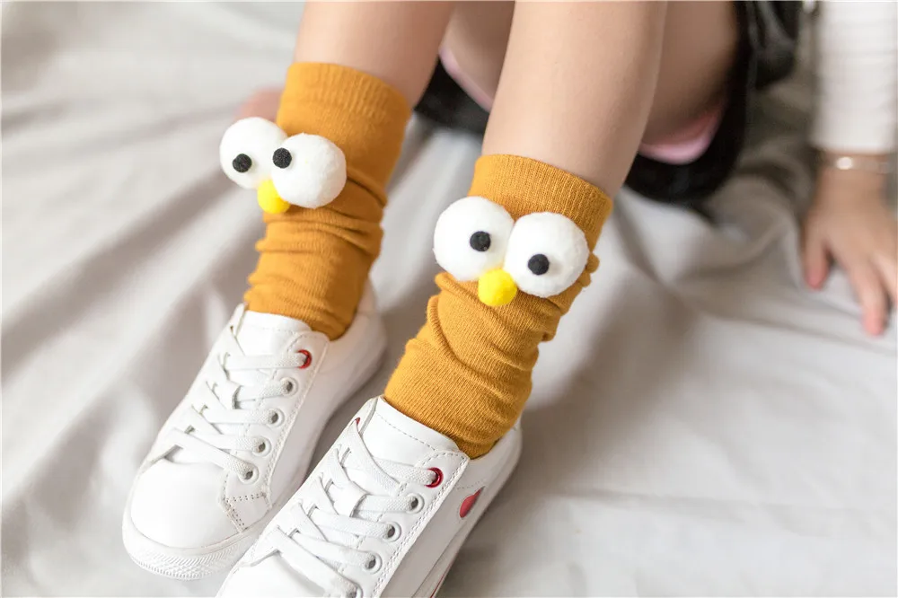 Детские носки Носки с рисунком Больших Глаз для девочек Детские хлопковые длинные носки Материал: хлопок Длина носка: 30 см