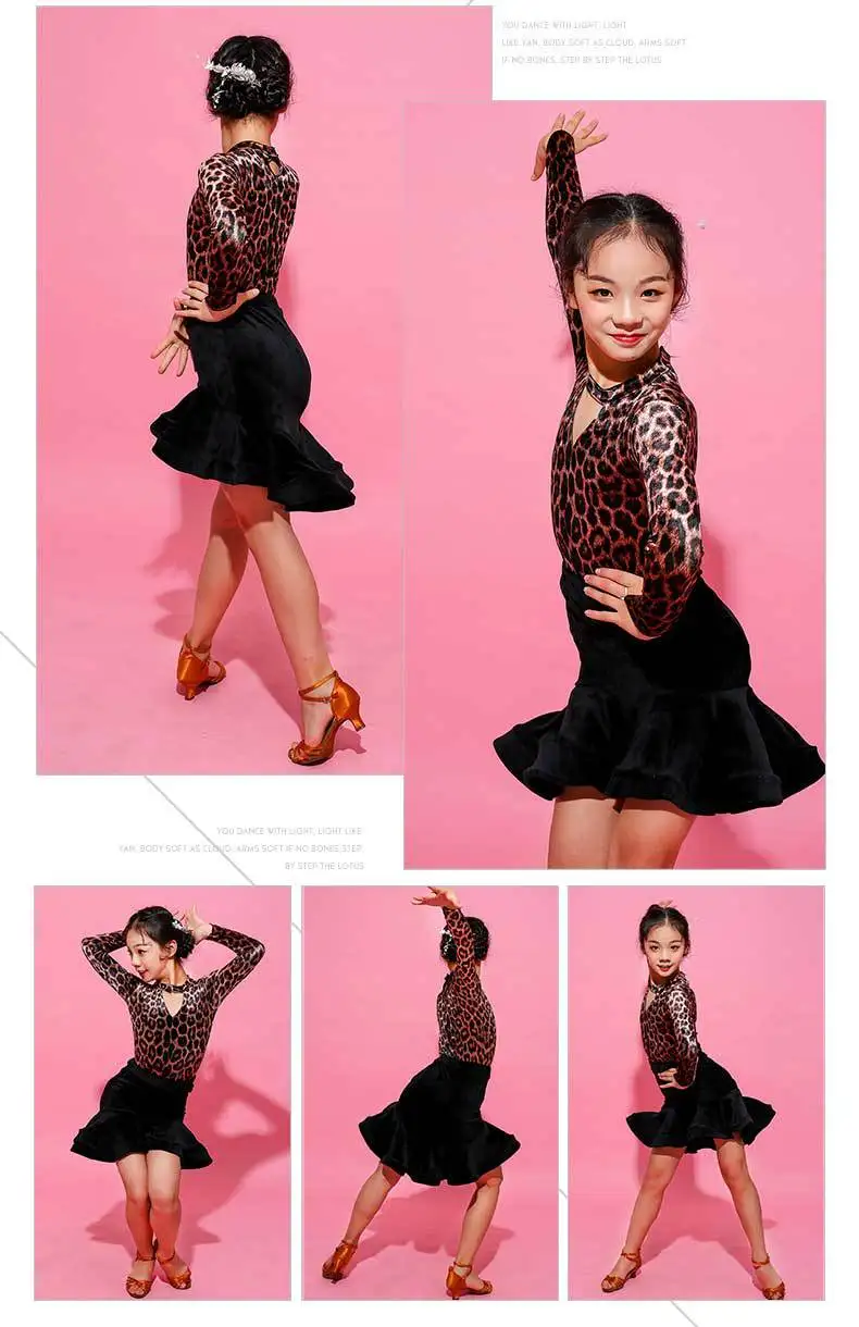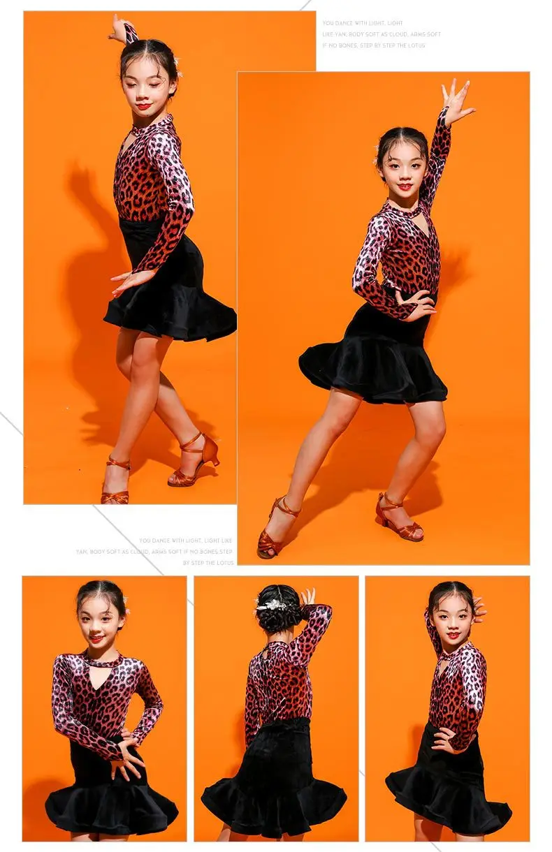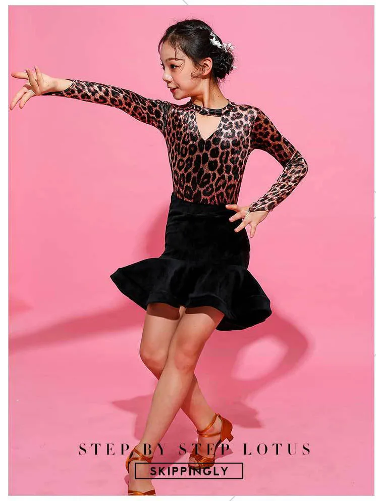 Бархатный костюм для латиноамериканских танцев с длинными рукавами и леопардовым принтом; Комплект одежды для танцев; Детские современные костюмы для выступлений на коньках
