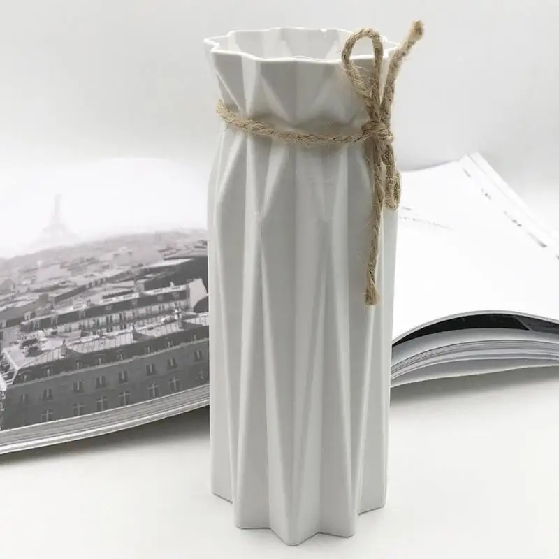 Origami Plastic Vase White Imitation Ceramic Flowerpot Flower Basket Artificial Flower Arrangement Container Home Decoration
