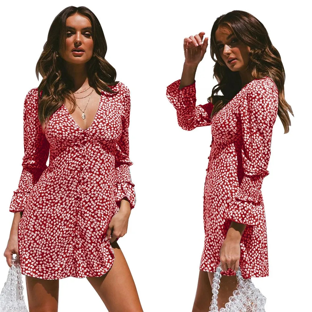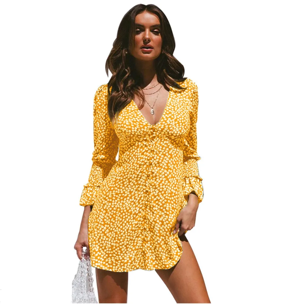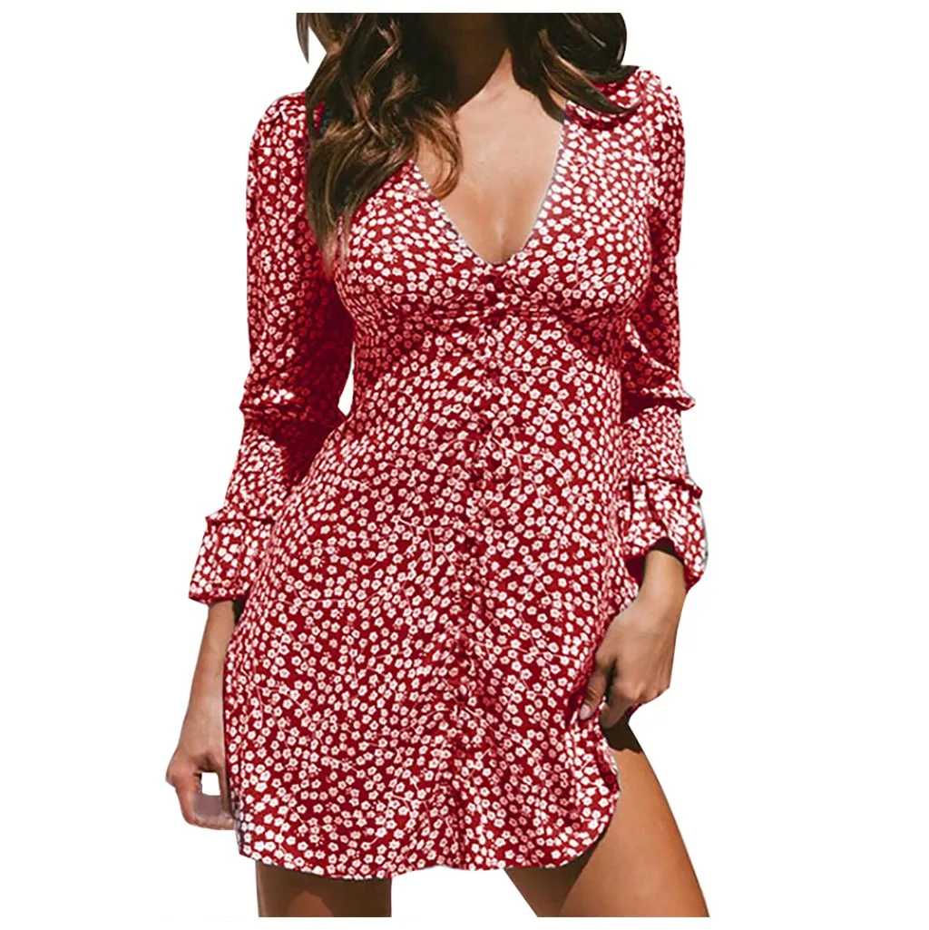 Женское Повседневное платье с глубоким v-образным вырезом и длинным рукавом