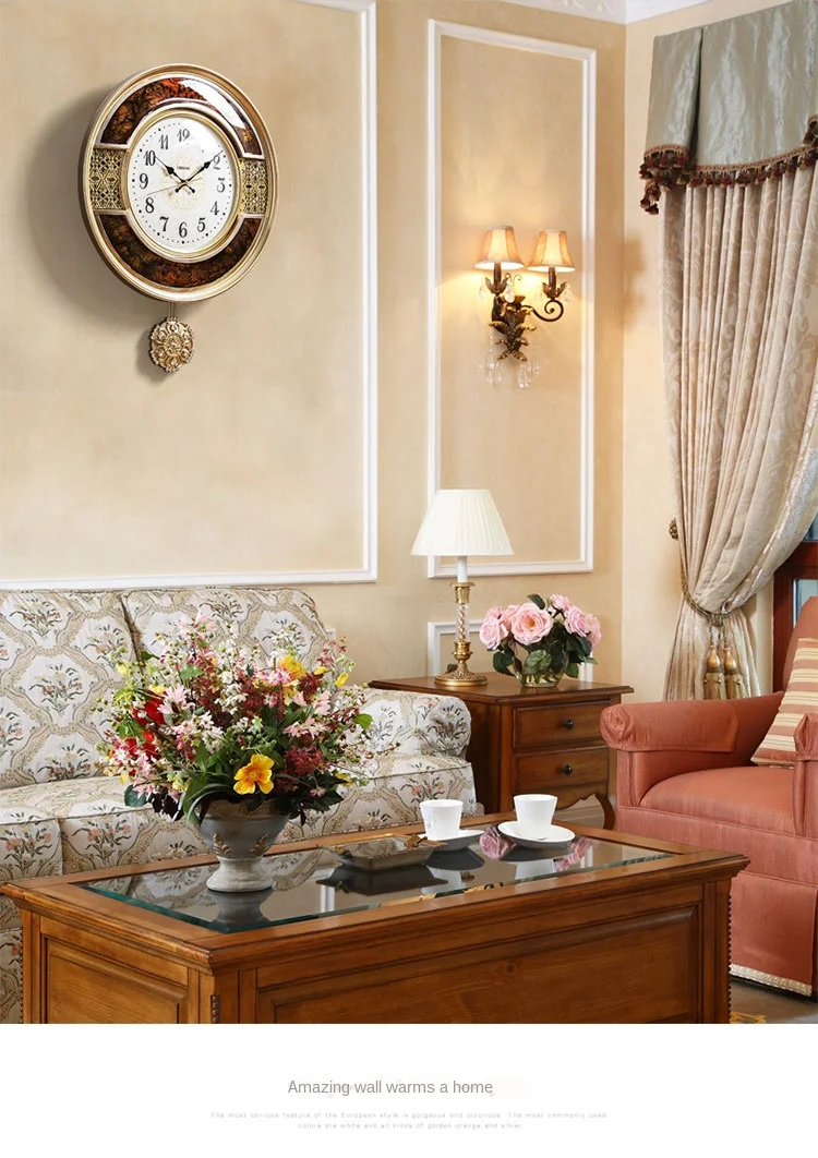 Настенные часы в Европейском стиле, современный дизайн, маятниковые часы, настенные часы, механизм, потертый шик, гостиная, американские кварцевые часы для спальни
