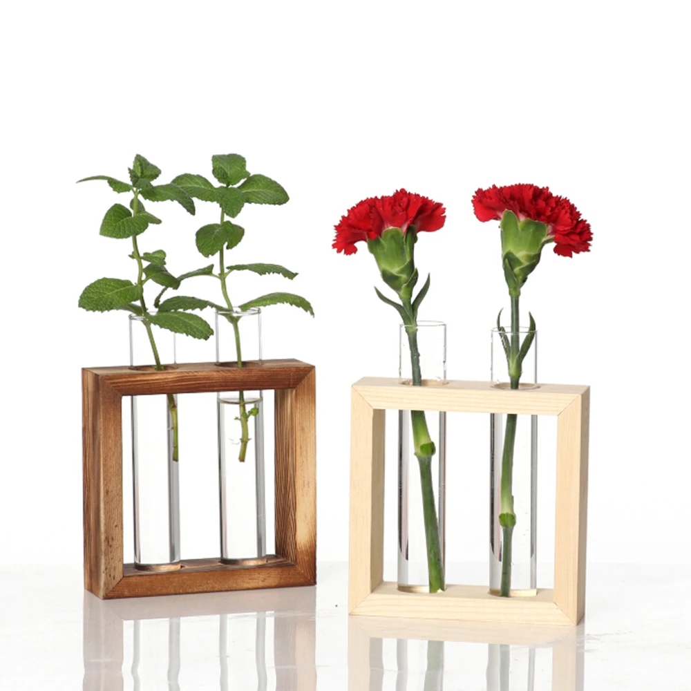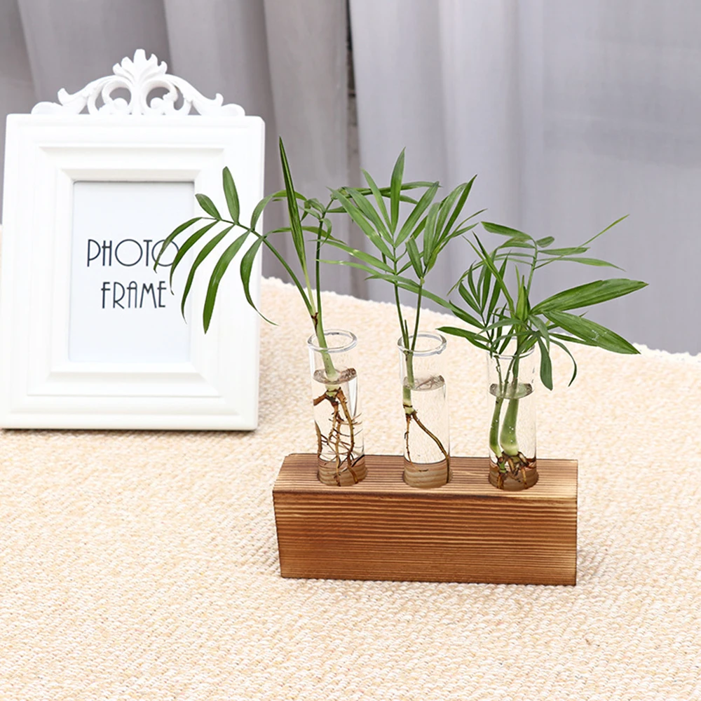 Стеклянная пробирка цветочный горшок гидропонная ваза для растений Террариум контейнер Настольный Декор террариума с Деревянной Стойкой