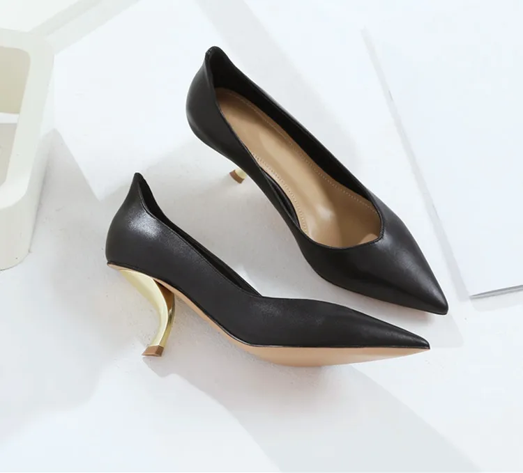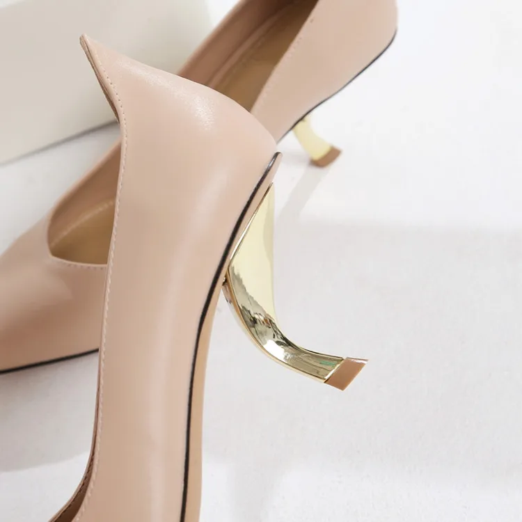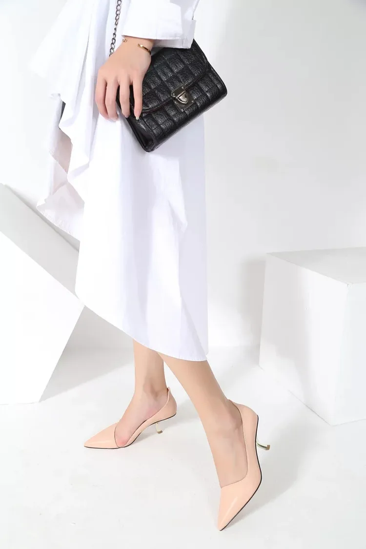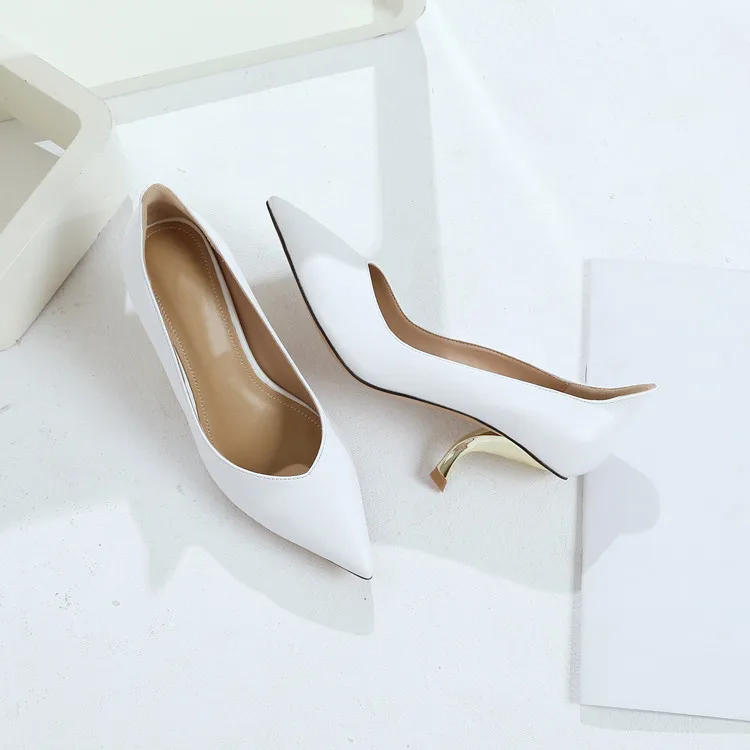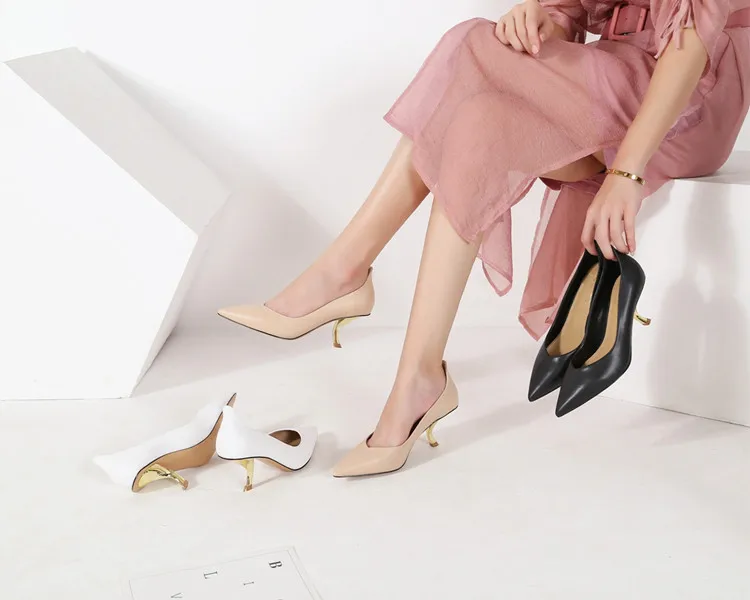 Тонкие туфли на высоком каблуке особой формы; женские туфли-лодочки; Новинка 2020 года; белые кожаные туфли с закрытым острым носком; большие размеры; туфли на высоком каблуке-шпильке с кошачьими ушками