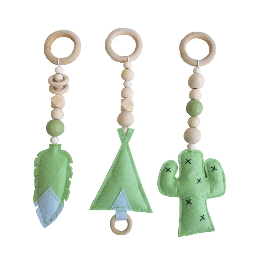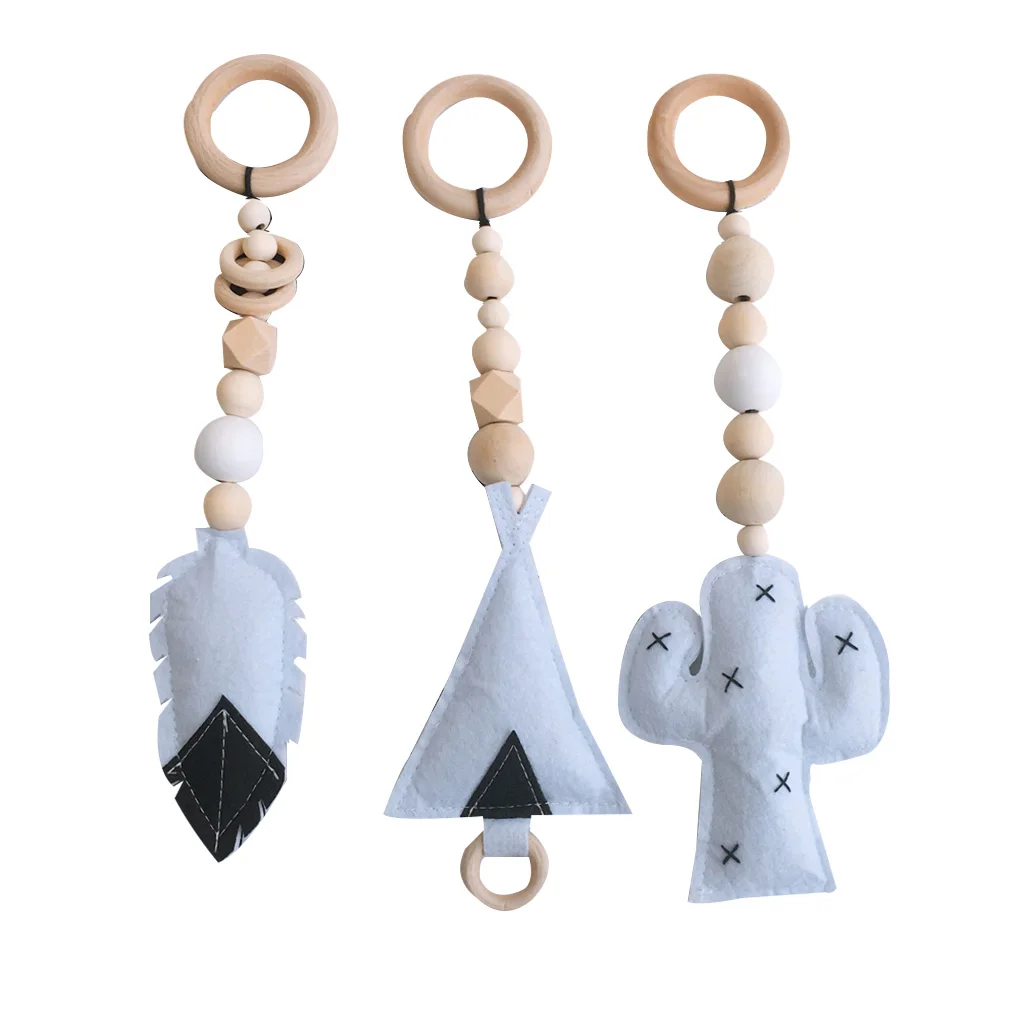 Деревянный Прорезыватель-этот набор из 3 игровых игрушек для спортзала изготовлен из необработанной древесины.