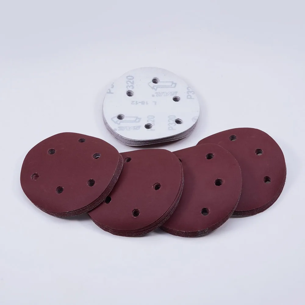 Utoolmart 50pcs 125mm Flocking Round Sandpapers with 6 Hole 40-1500 Grit Hook and Loop Sanding Disc For Grinding and Polishing
