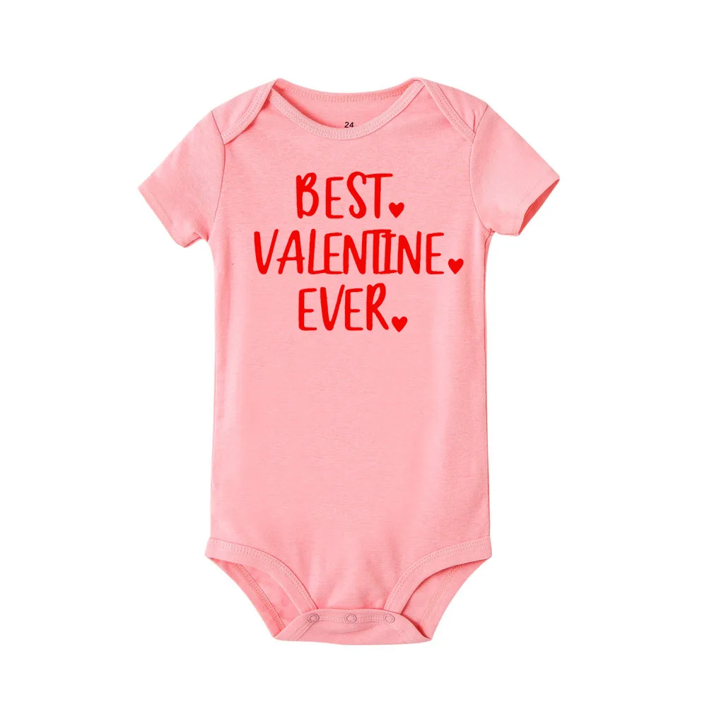 Лучший ко Дню Святого Валентина, когда-либо младенческой для маленьких мальчиков Ползунки для девочек; Одежда для новорожденных; Одежда для малышей; Первый день Святого Валентина короткий рукав милый комбинезон наряд