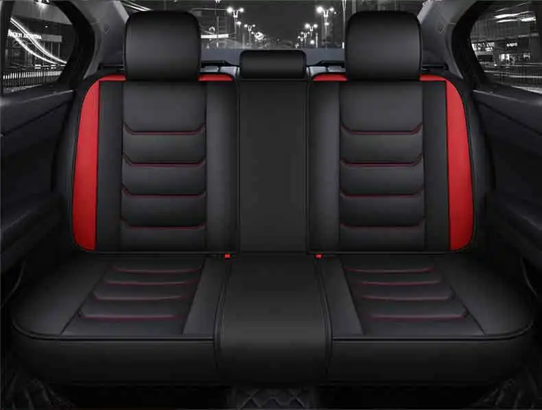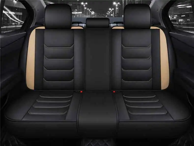 1,Made of high-quality artificial leather, it is wear-resistant and easy to clean. 2,The side is anti-skid, fixed. It reserves for the airbag outlet. It does not affect the original car function, safe and secure. 3,If there is a armrest on the rear seat backrest,the seat cover doesn't affect it.The rear row is a split design that can be adjusted to the seat size. 4,It is simple to install,doesn't need professional experience,one person could compelete in 20 minutes.There are belts under the seat cover,so it can't move. 5,It is universal,fits most of 5-seats cars,suv,pick-up,trucks which have separate headrest. 6,It doesn't fit MPV whose seats are arranged to 2+2+3,or the rear seats are individual.If you have a SUV which has 7 seats,after folding the third row seats,there is no problem. 7,If there are some situations,it doesn't fit too,for example,there is a TV or table on the seat back,the rear seats are only for 2 persons,the rear seats have no headrest. 8,The bottom of seats, seat back and rear seats are whole surrounded. It comprehensively protects your car seat from damage. The overall effect is stylish and nice-looking.