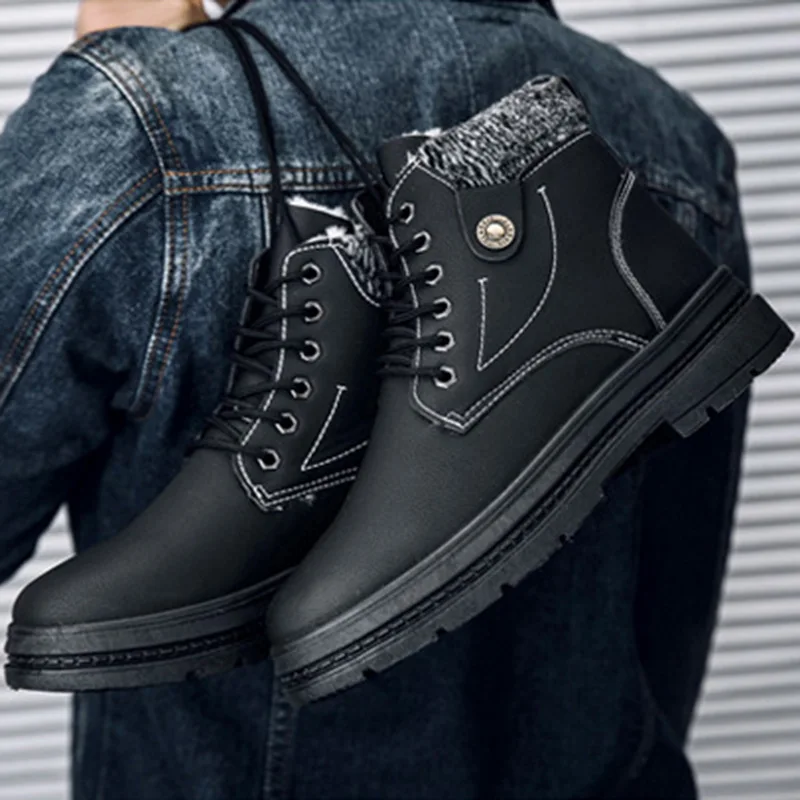 Новые мужские зимние ботинки для мужчин ботильоны теплые рабочие с плюшем и