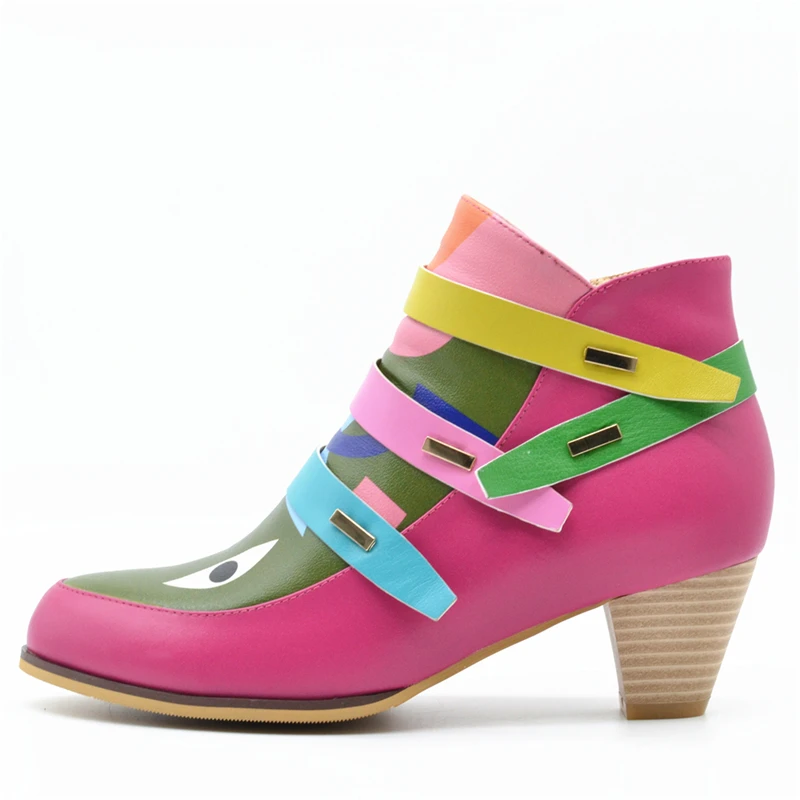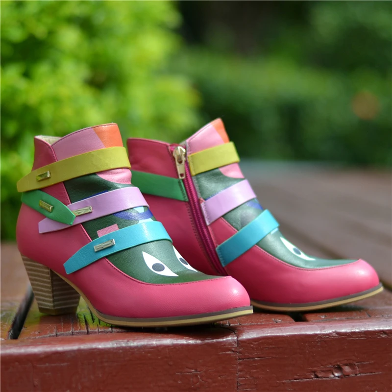 BuonoScarpe/женские зимние ботильоны; Теплые вечерние туфли на высоком каблуке; Элегантные кожаные ботинки смешанных цветов с ремешком; Botas Mujer; Ботинки на металлической молнии