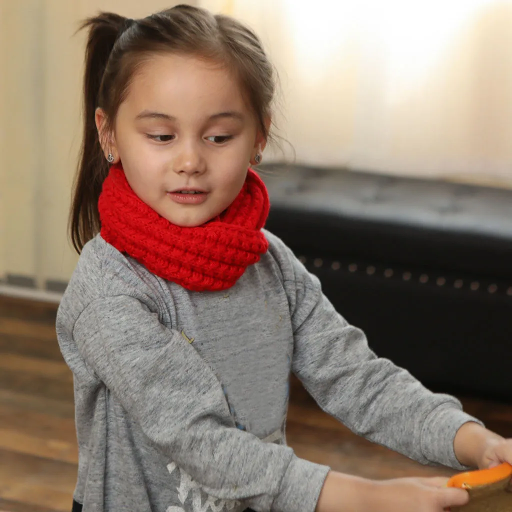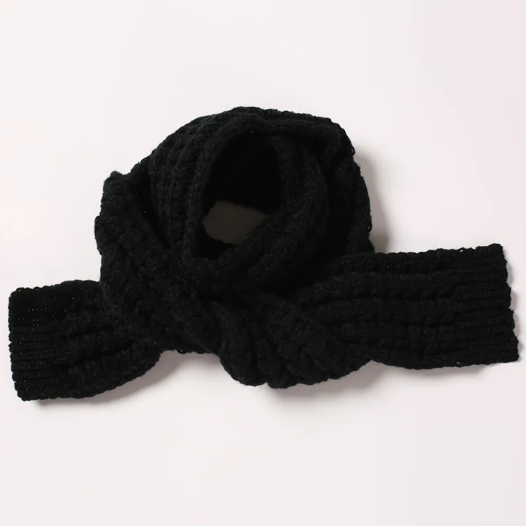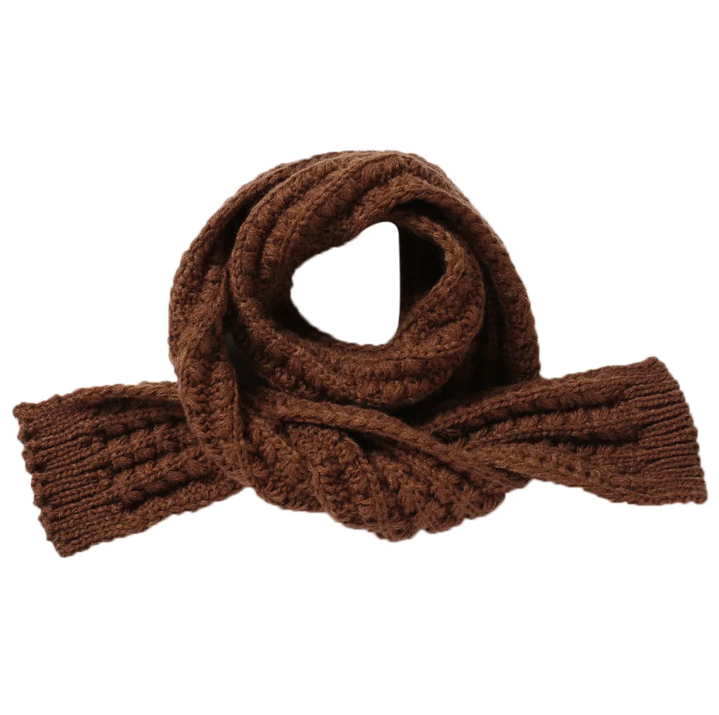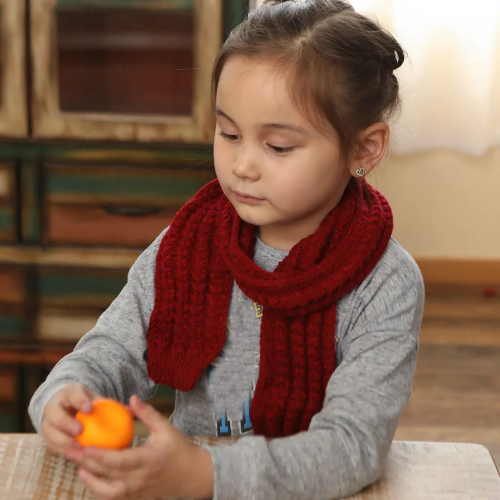 Милый вязаный шарф для мальчиков и девочек, осенне-зимний теплый однотонный шарф