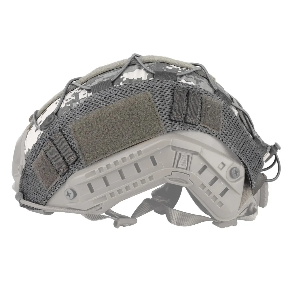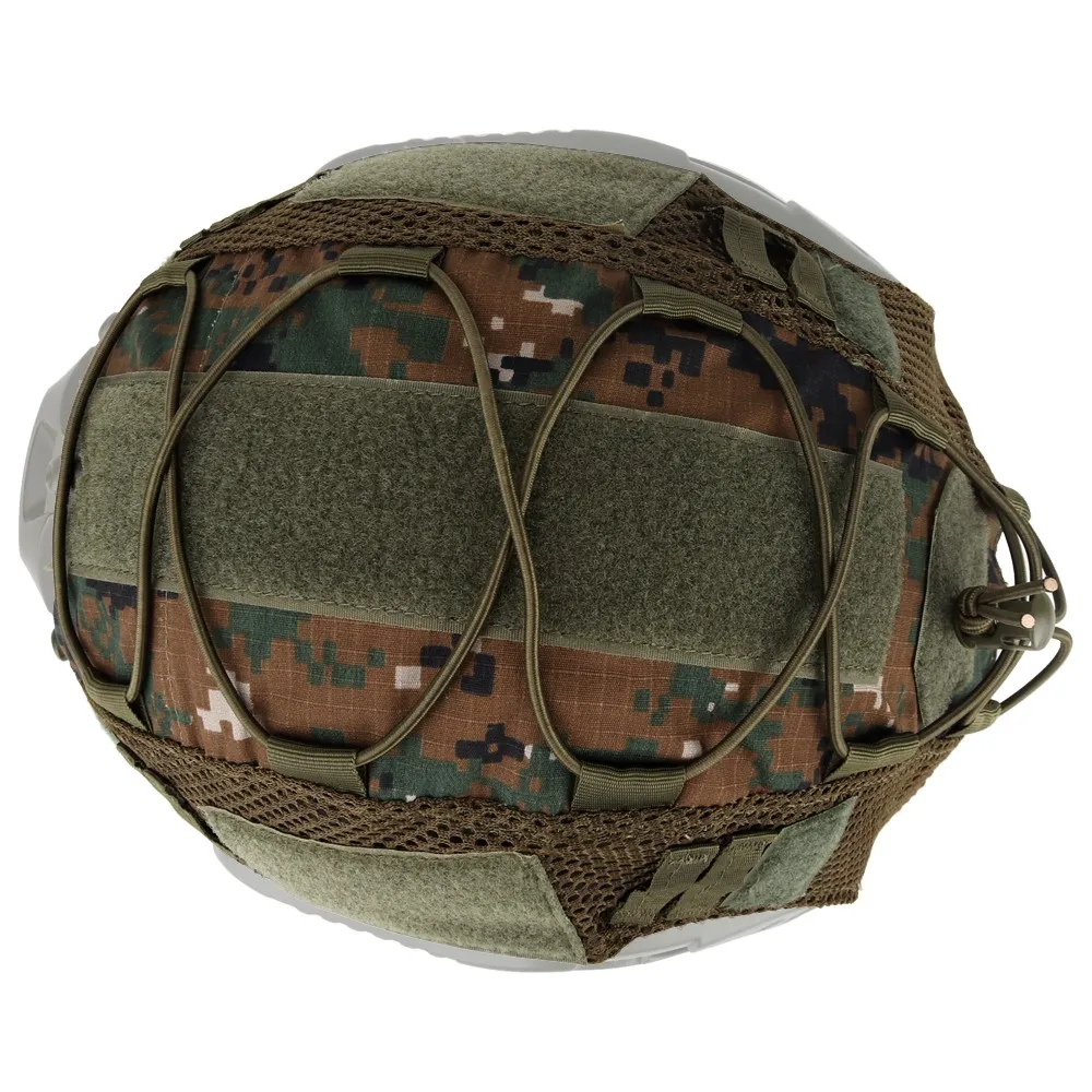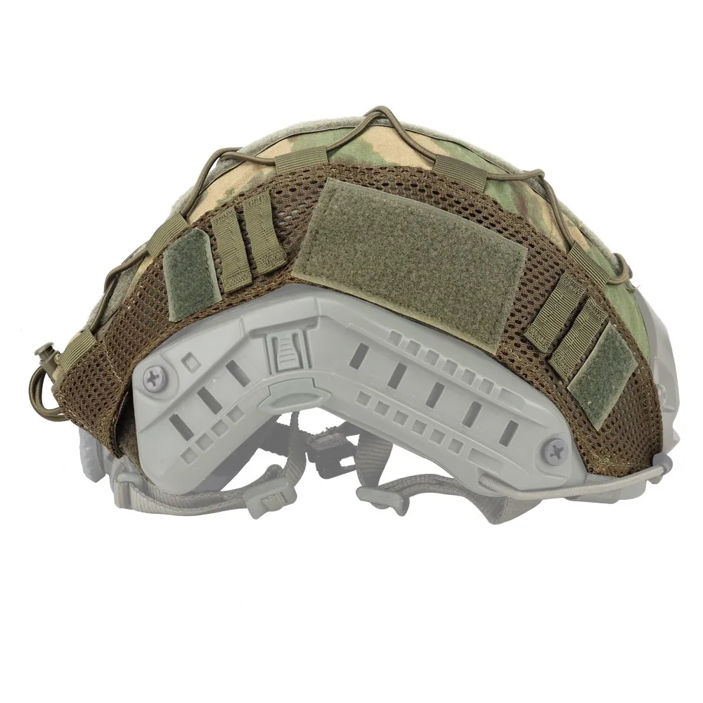 Изготовлен из высококачественного нейлона 500D. Водонепроницаемый и прочный. 7 типов камуфляжной расцветки. Модернизированная система Molle & hook-and-loop с крестообразными шнурами, которые могут зафиксировать аксессуары для шлема. Простая установка и легкое удаление без необходимости снимать NVG. Волшебный крюк и петля в центре шлема, можно вставить ваши любимые патчи.