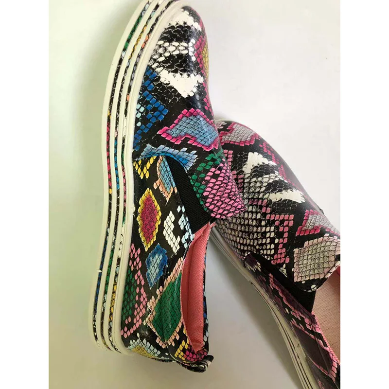 Женская Вулканизированная обувь из искусственной кожи со змеиным принтом; Женские кроссовки на шнуровке; Модная женская обувь на платформе; Новинка 2020 года; Прогулочная обувь