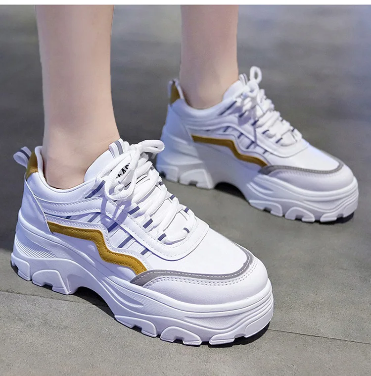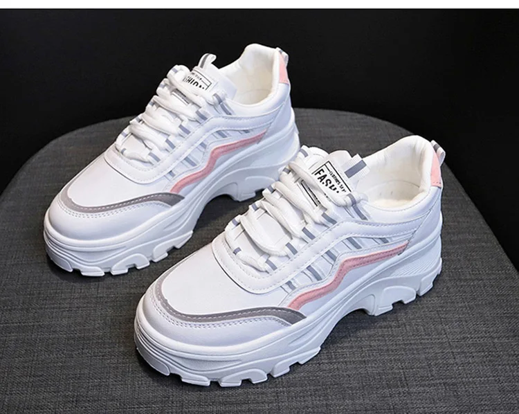 Новинка 2020 года; Женская обувь на толстой мягкой подошве; Модные белые кроссовки на платформе; Женские кроссовки со светоотражающими вставками; Обувь для папы; Tenis Feminino