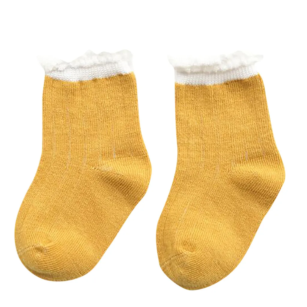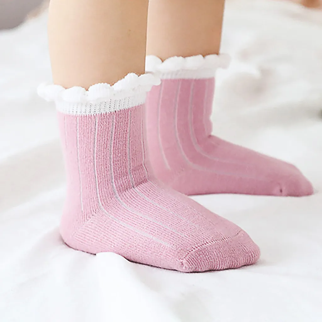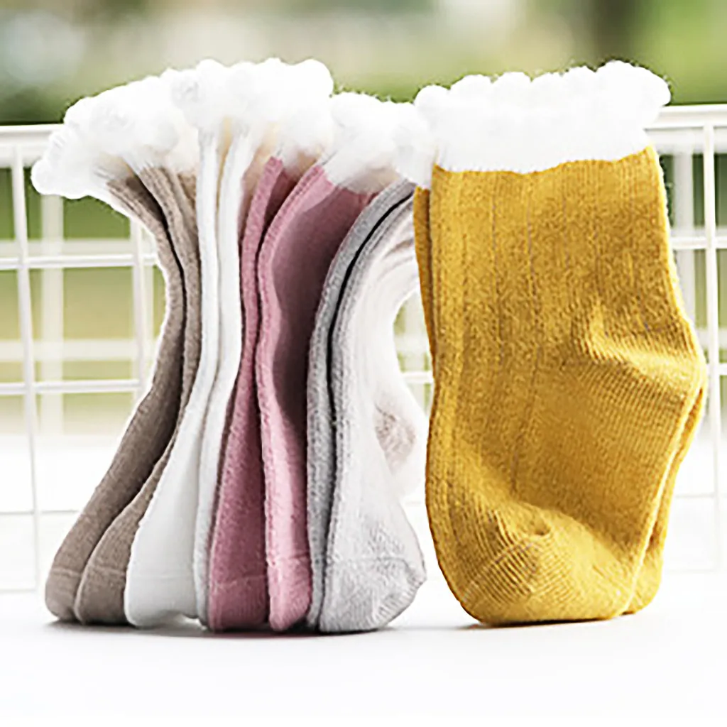 Милые однотонные хлопковые носки с пышными краями для маленьких девочек; чулки