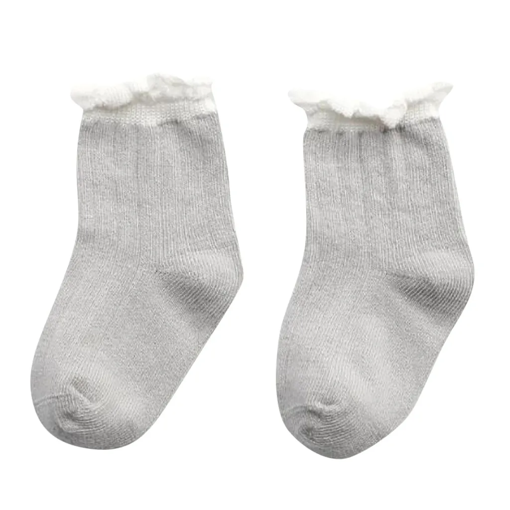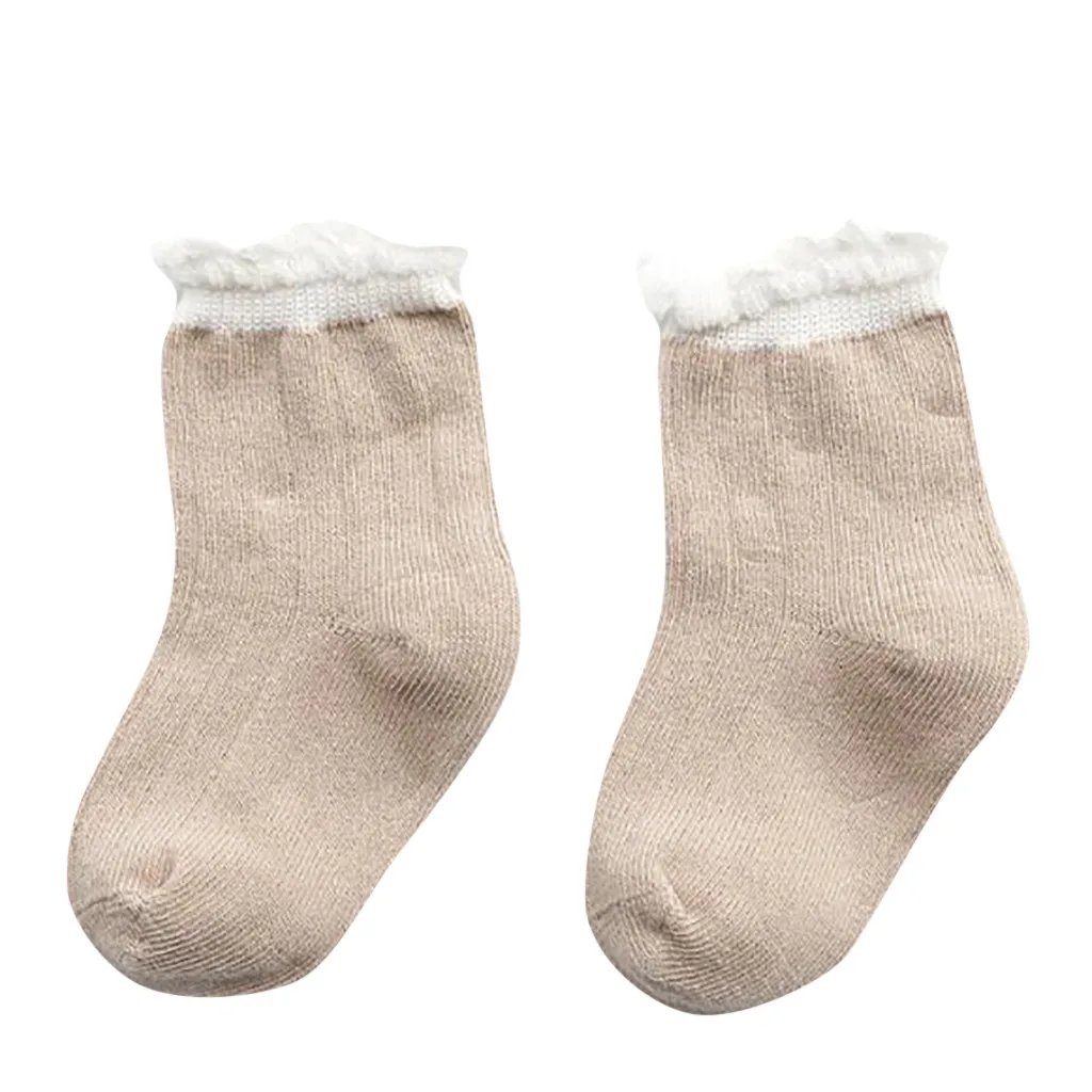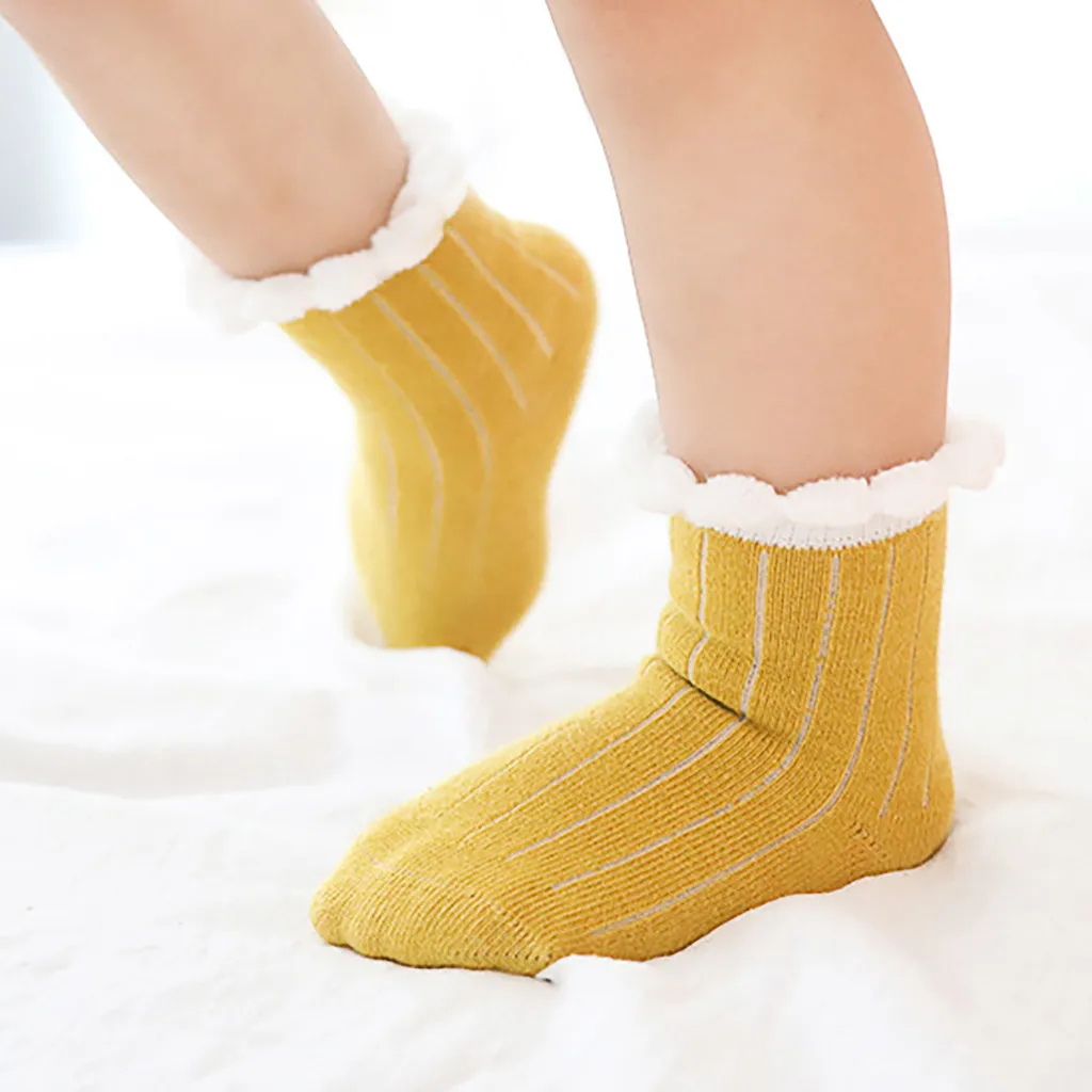 Милые однотонные хлопковые носки с пышными краями для маленьких девочек; чулки