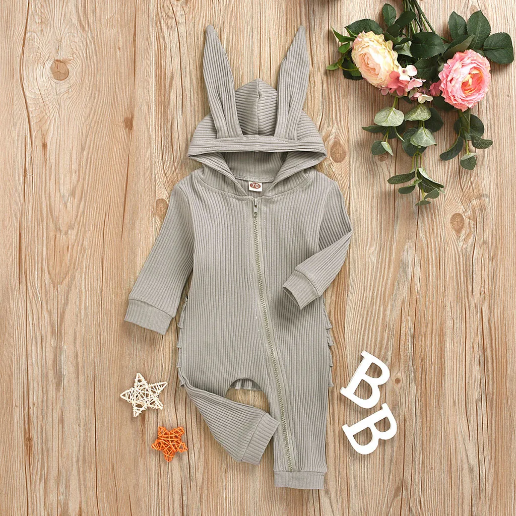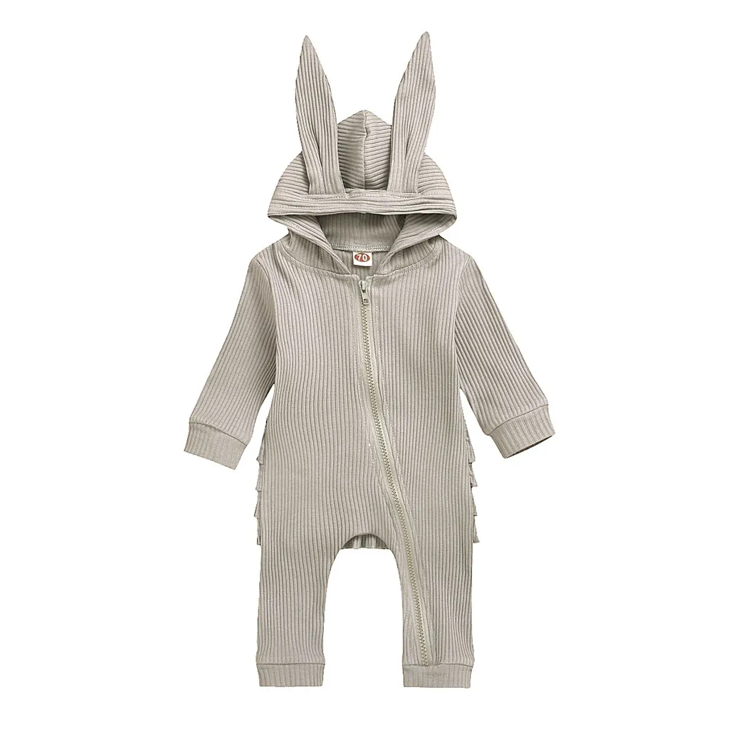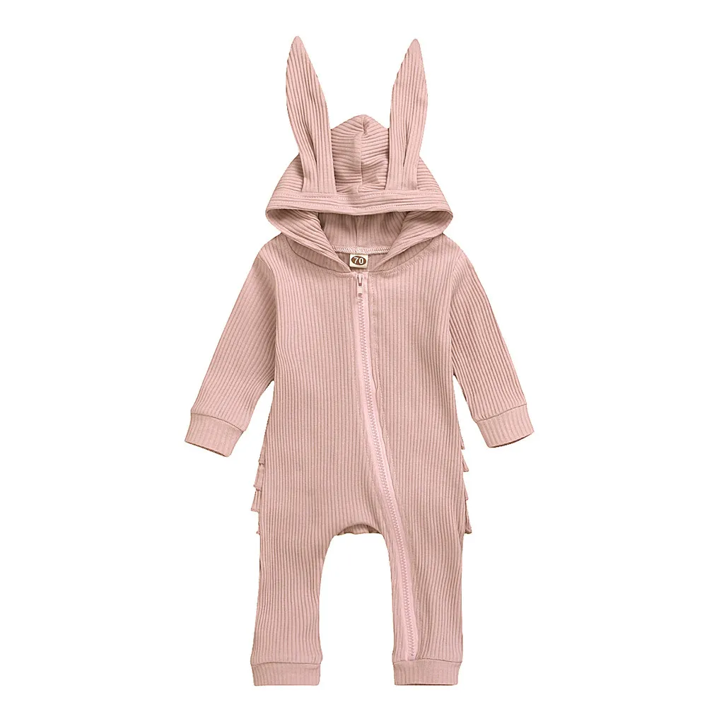 Комбинезон с капюшоном и оборками с заячьими ушками для новорожденных мальчиков и девочек