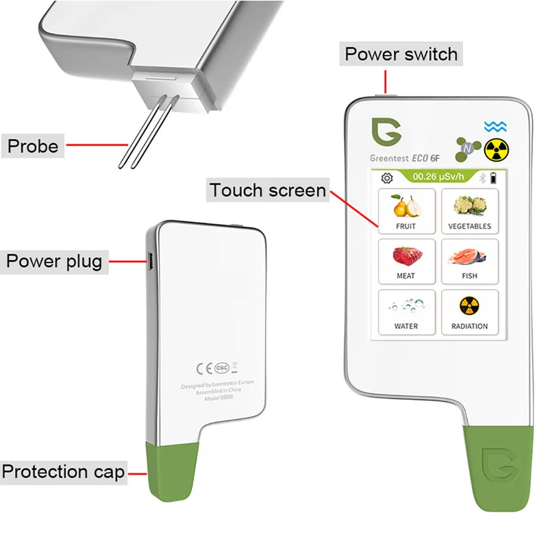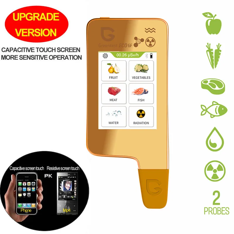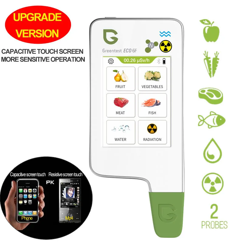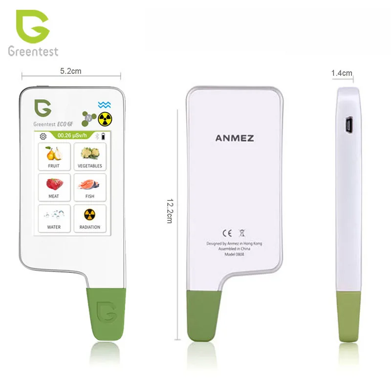 Greentest ECO-6F является уникальным 3-в-1 нитрат испытательное устройство, жесткостиь воды и излучения. Разработано с использованием новейшей технологии нитрата, воды и радиационного тестирования, крупнейшего уровня нитрата ECO-5Fdetects в 64 самых потребляемых фруктах и овощах, а также всех видах мяса и рыбы. Кроме того, ECO-6F Greentest обнаруживает общее количество растворенных твердых веществ (TDS) в воде (или жесткости воды), а также фоновое излучение в вашей окружающей среде, чтобы оповещать вас о вредном излучении. Уникальная особенность быстрого анализа Itrsquos может сказать вам всего за 3 секунды, если ваша еда, вода или среда вредны для вашего здоровья.