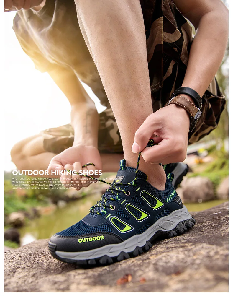 Мужская Уличная походная обувь; сезон весна-лето; воздухопроницаемая обувь из сетчатого материала; Водонепроницаемая нескользящая обувь для скалолазания; мужские треккинговые кроссовки