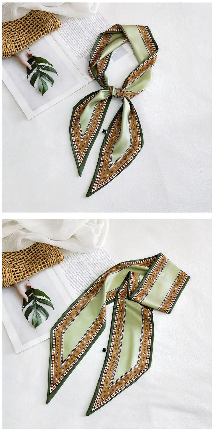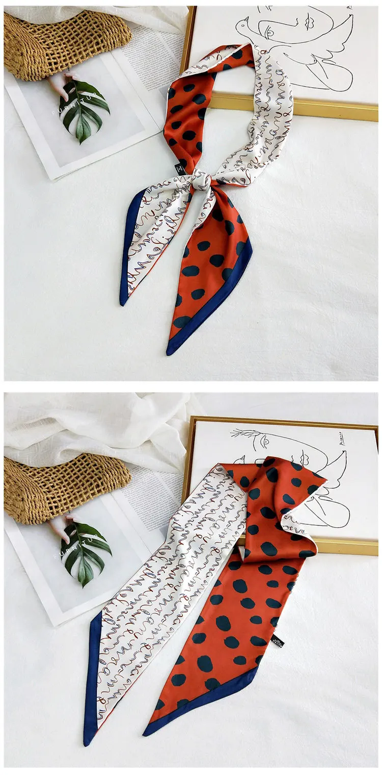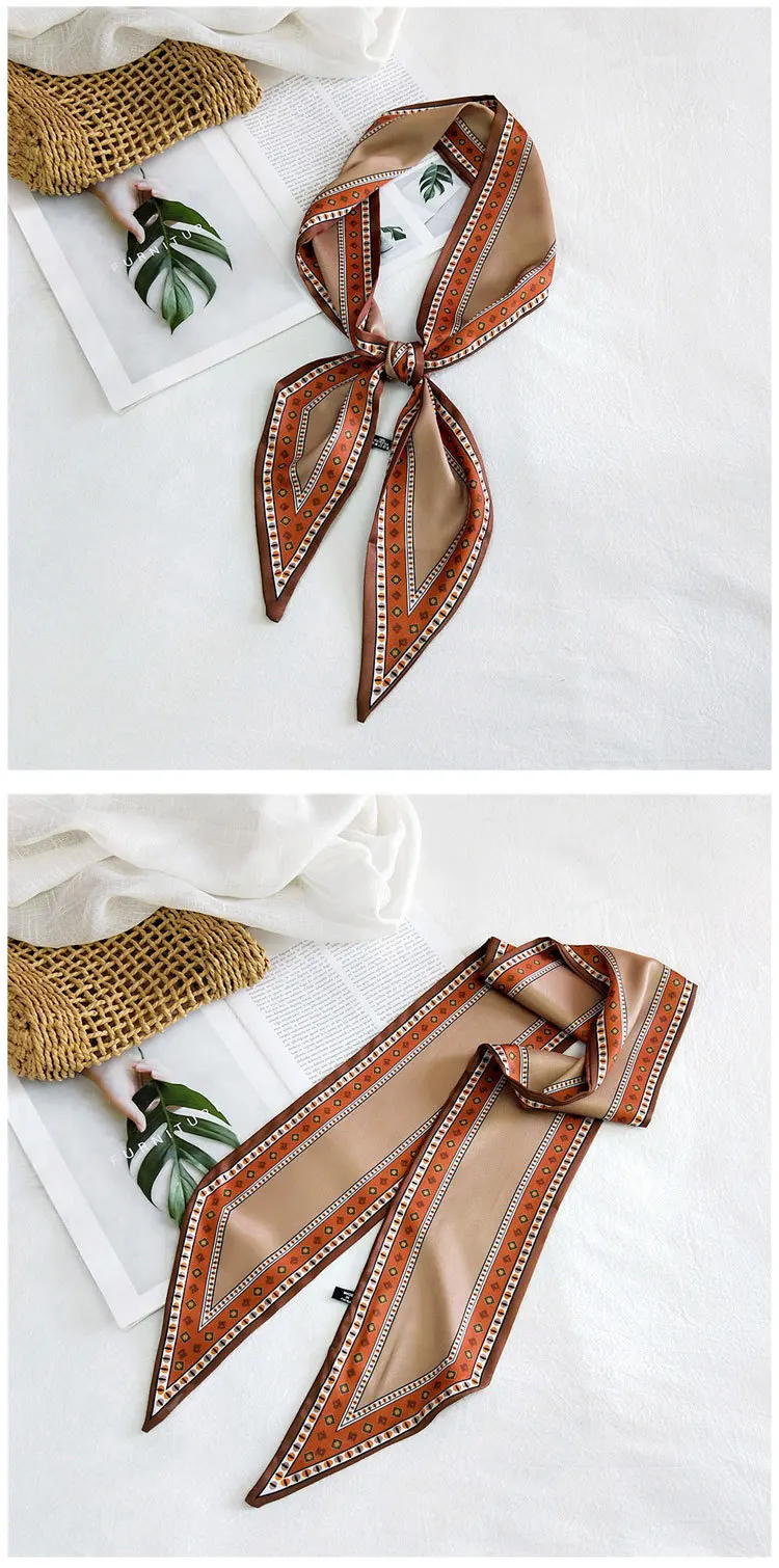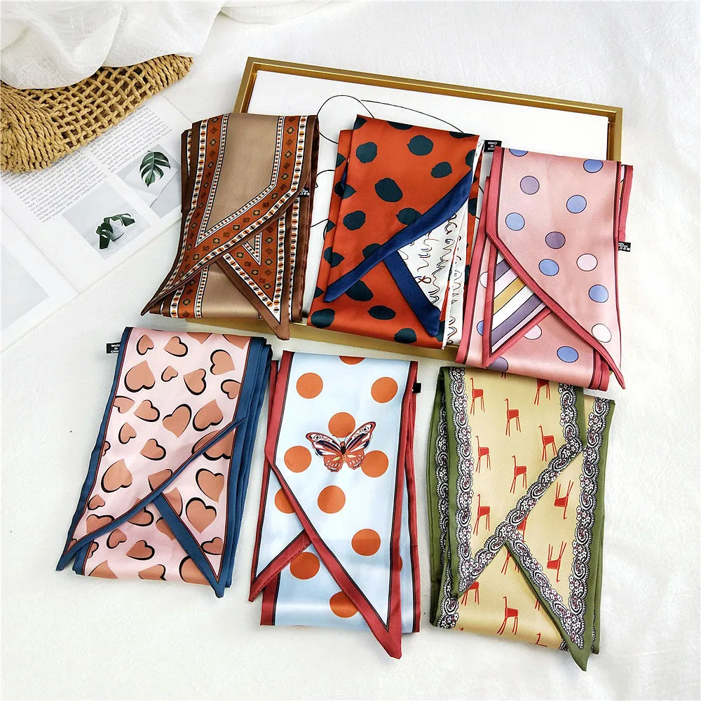 Handle bag hair multifunctional stripe printed satin narrow thin long small ribbon scarf woman silk handkerchief SJ205