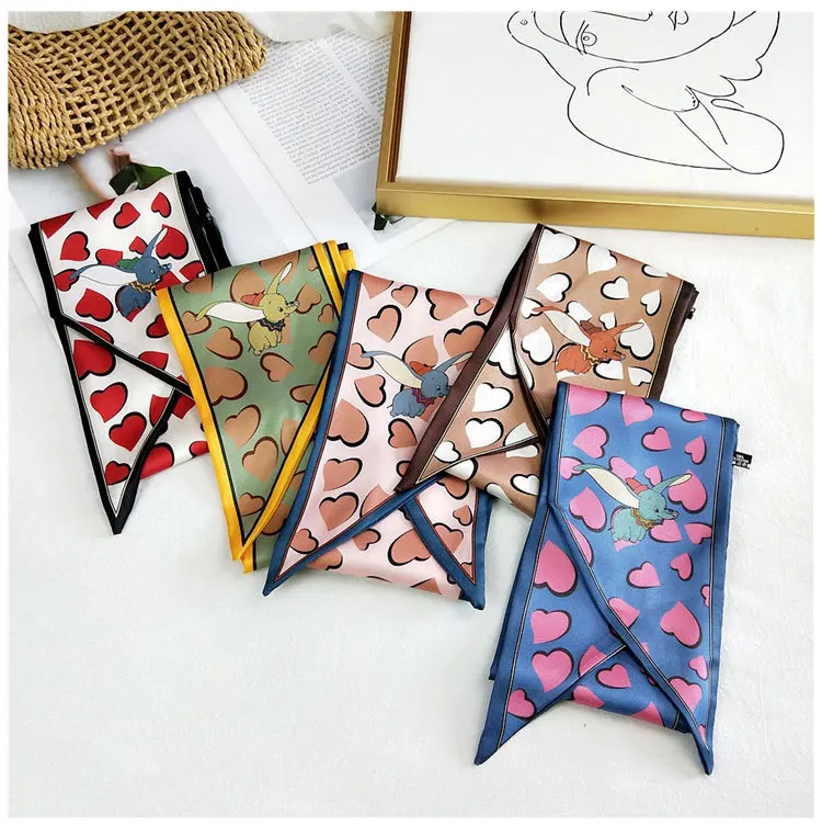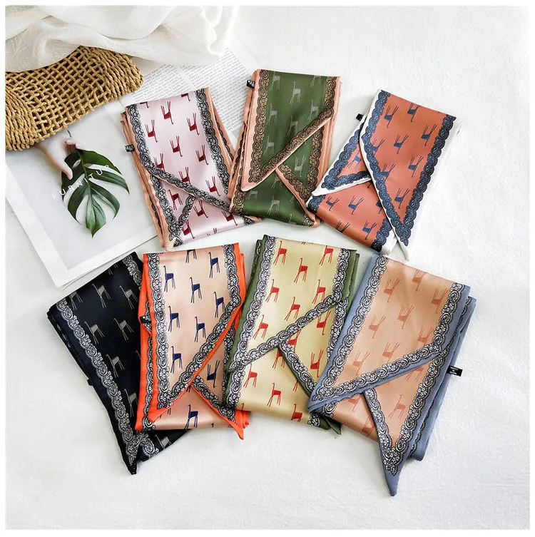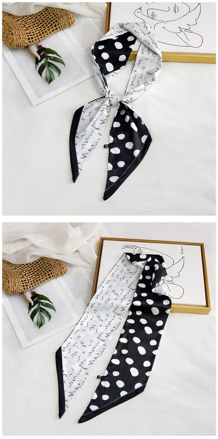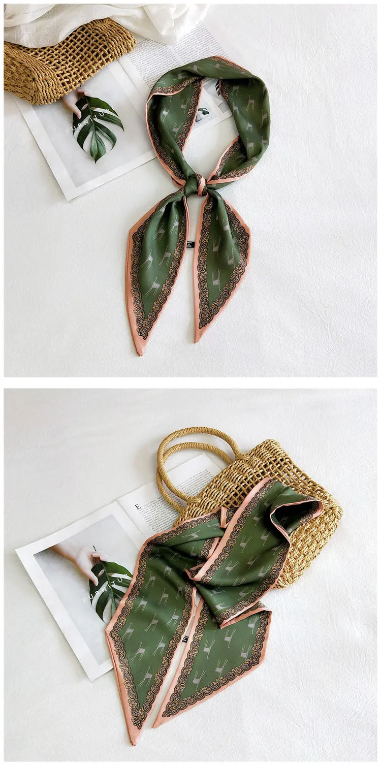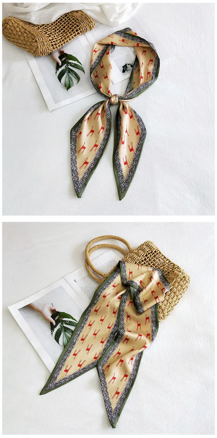 Handle bag hair multifunctional stripe printed satin narrow thin long small ribbon scarf woman silk handkerchief SJ205