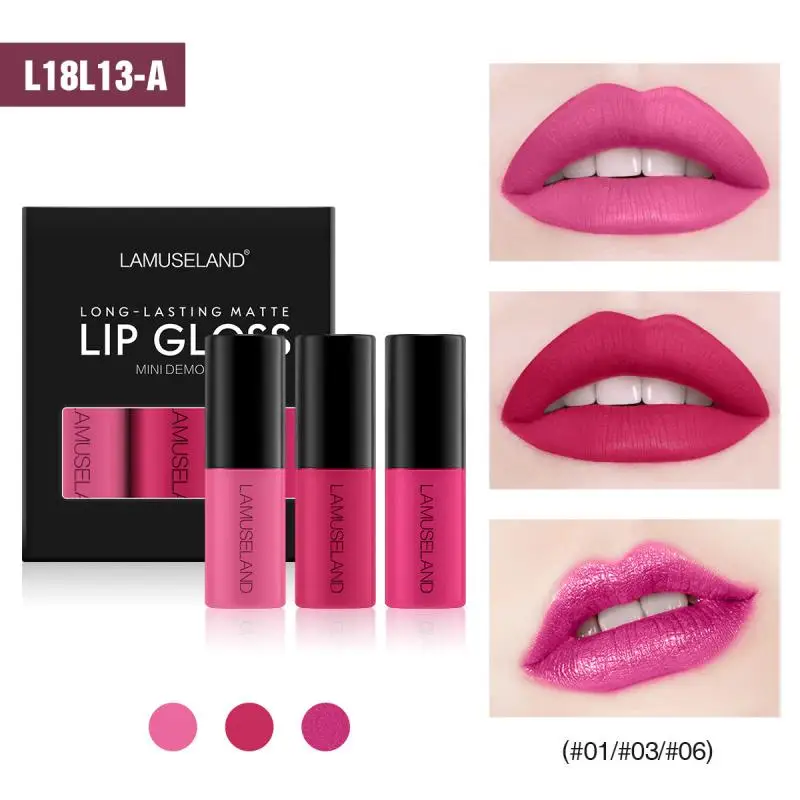 LAMUSELAND 3 палочки блеск для губ образец матовый долговечный антипригарный стаканчик блеск для губ Косметика для макияжа