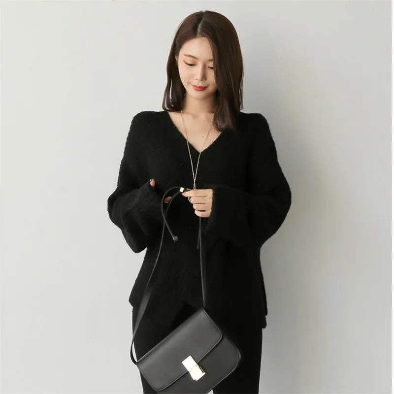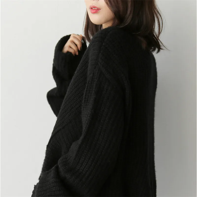 Женский свитер Зимний вязаный кашемировый джемпер оверсайз Теплый черный