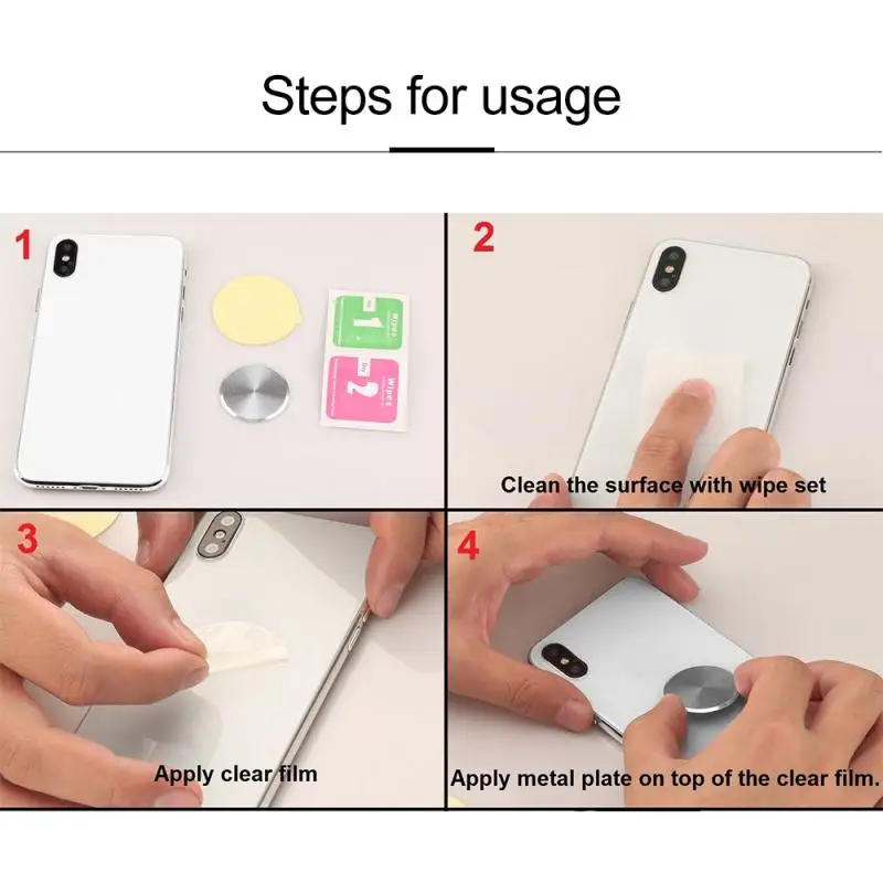 Примечание: Эти продукты не являются магнитом и не могут прилипать к другому металлу. Эти металлические пластины должны использоваться с магнитным держателем для мобильного телефона.