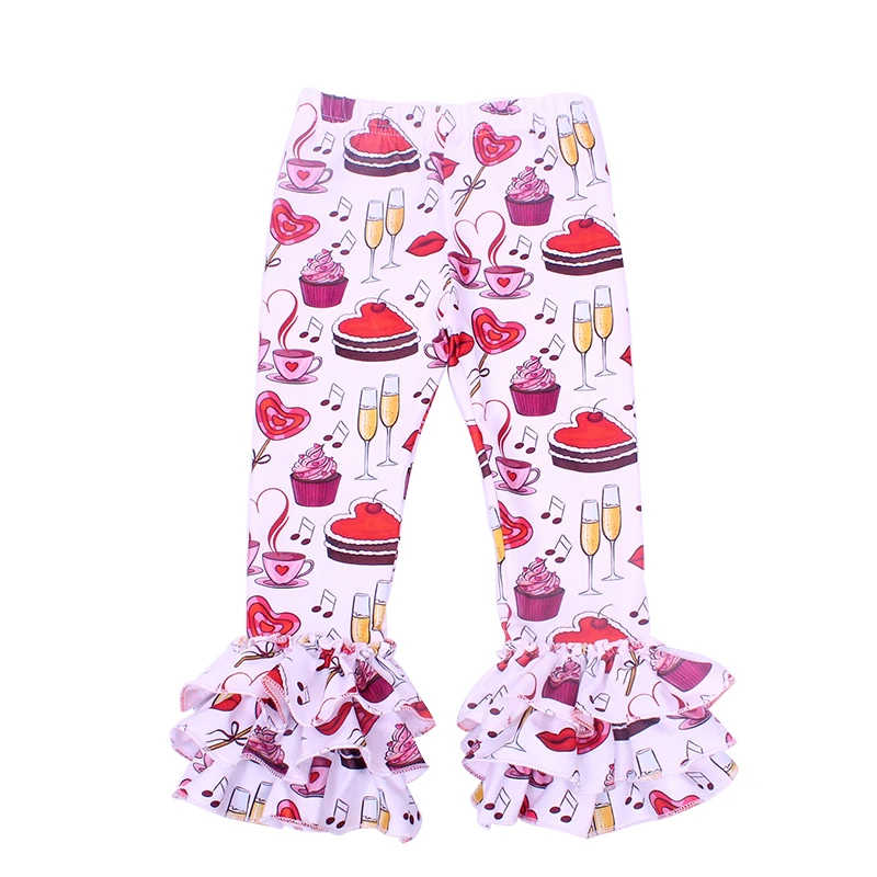 Брюки для девочек на День святого Валентина из молочного шелка; Модные брюки для маленьких девочек с рисунком торта; Эластичные брюки; Длинные брюки