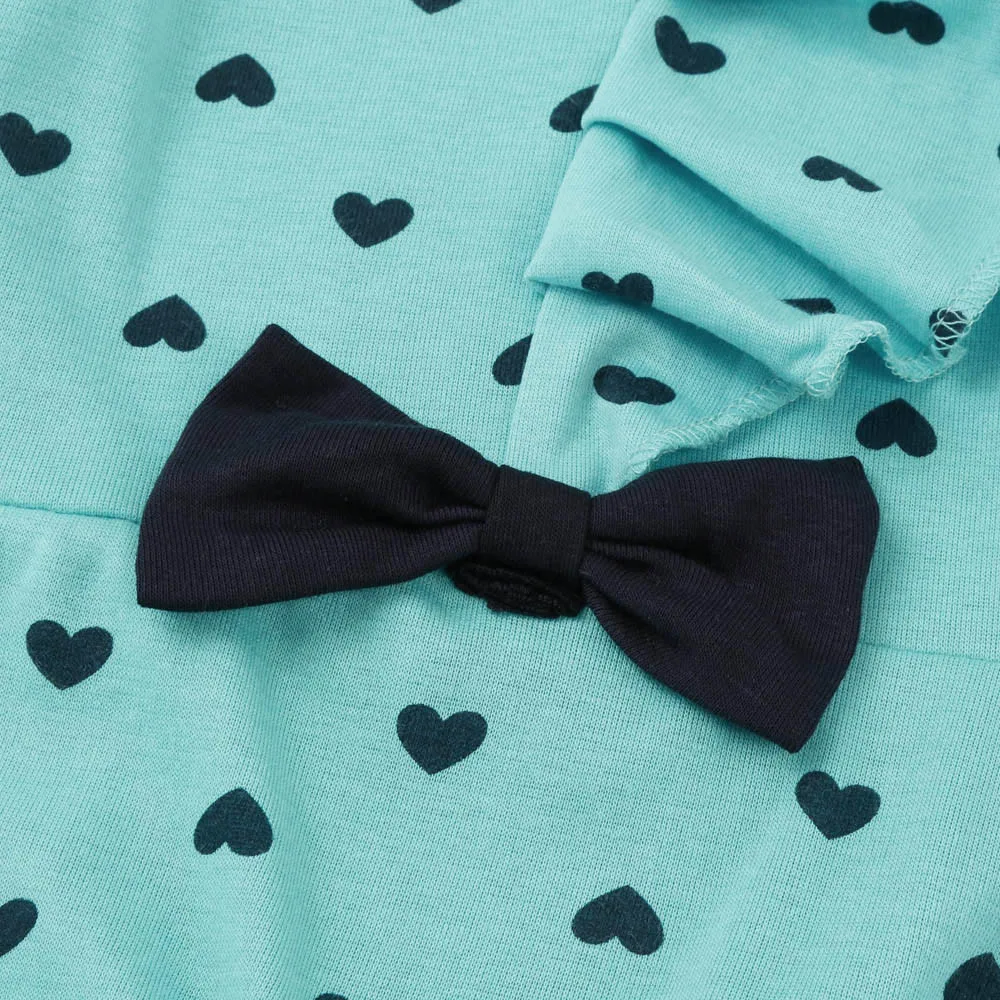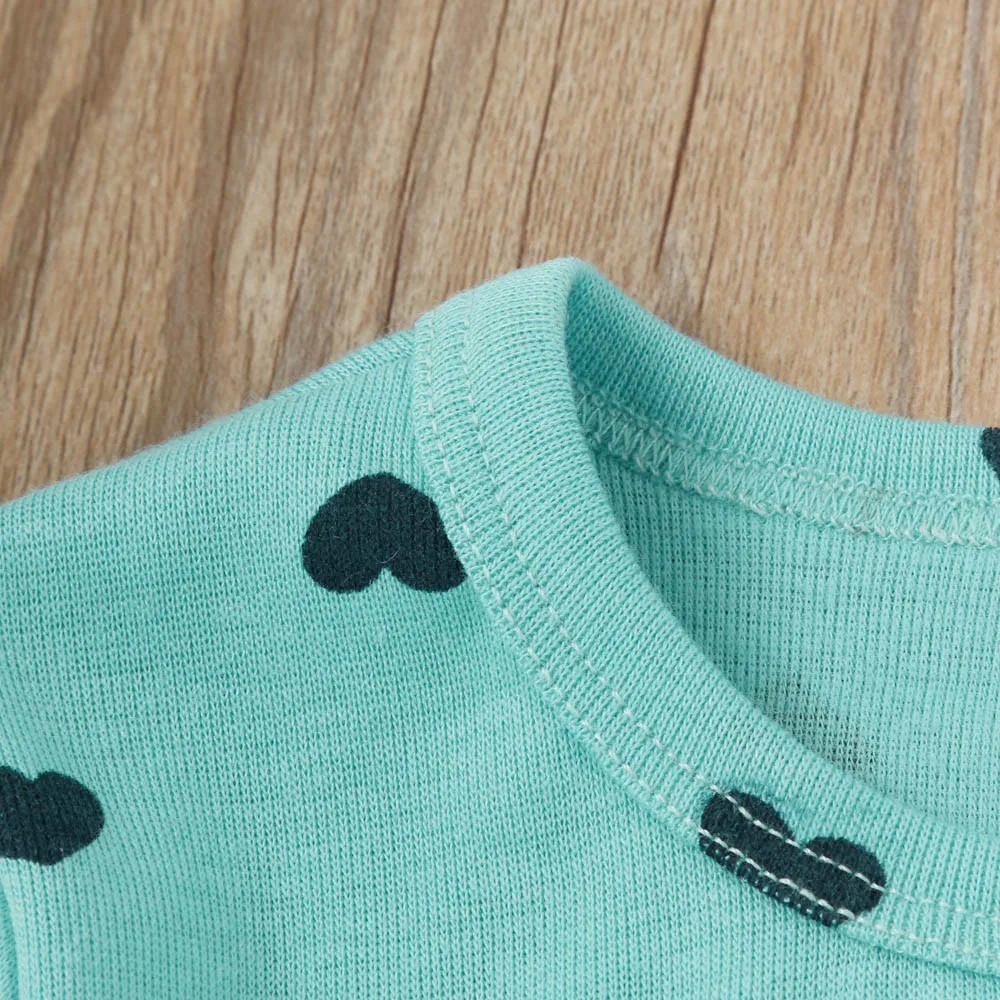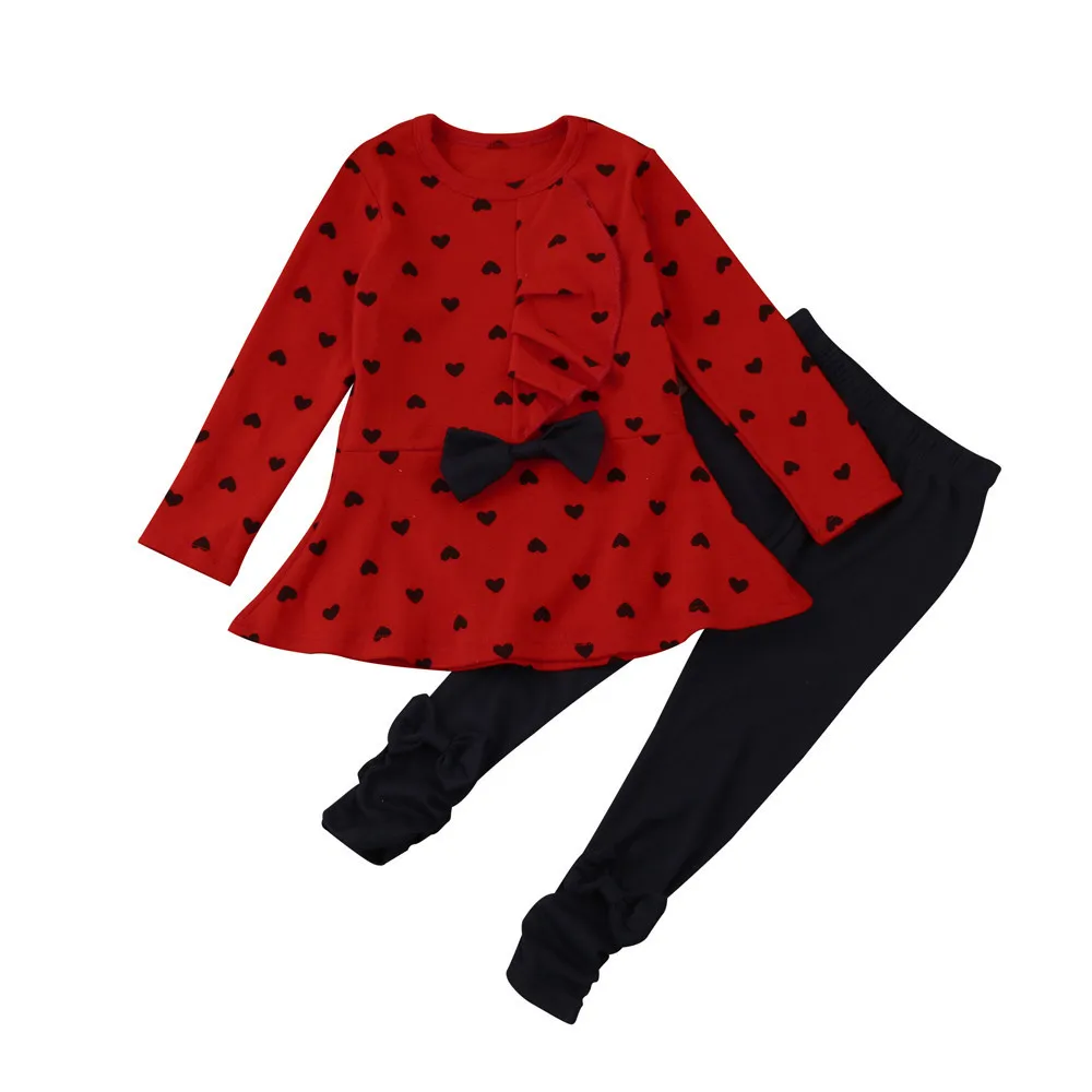 Хлопковая одежда для маленьких девочек комплект детской одежды унисекс, милый костюм из 2 предметов с принтом в виде сердца и бантом детский комплект, футболка и штаны