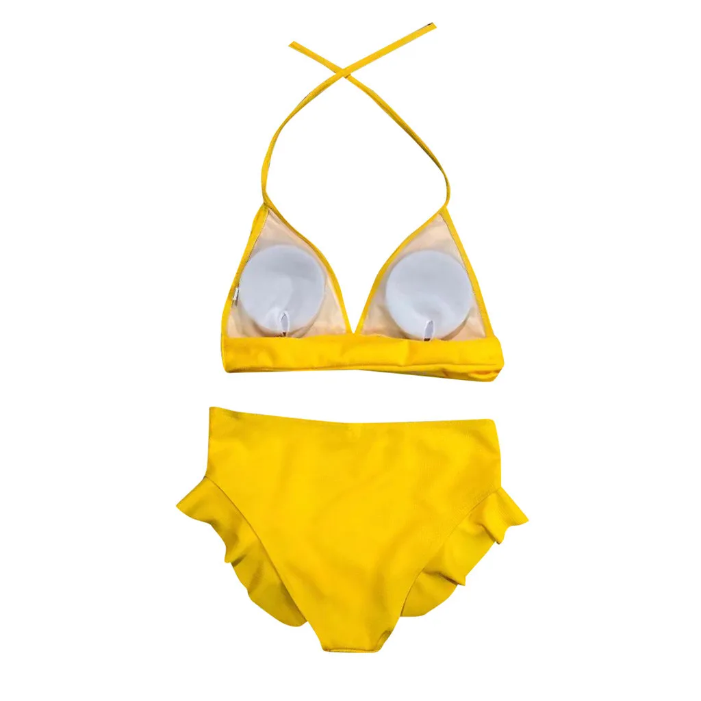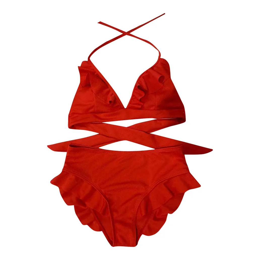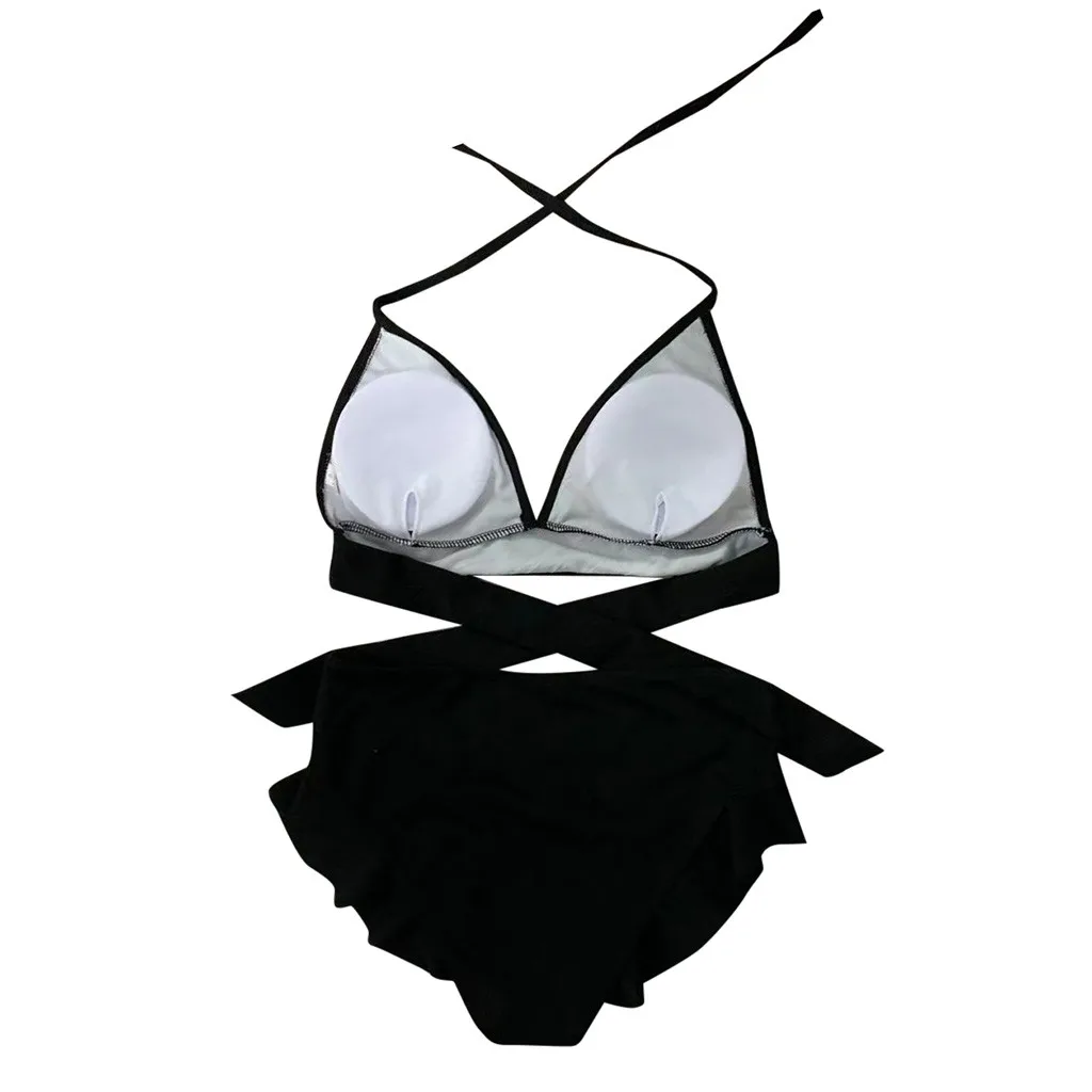 Женский комплект бикини с пуш-ап бюстгальтером и оборками, купальный костюм с низкой талией, купальный костюм