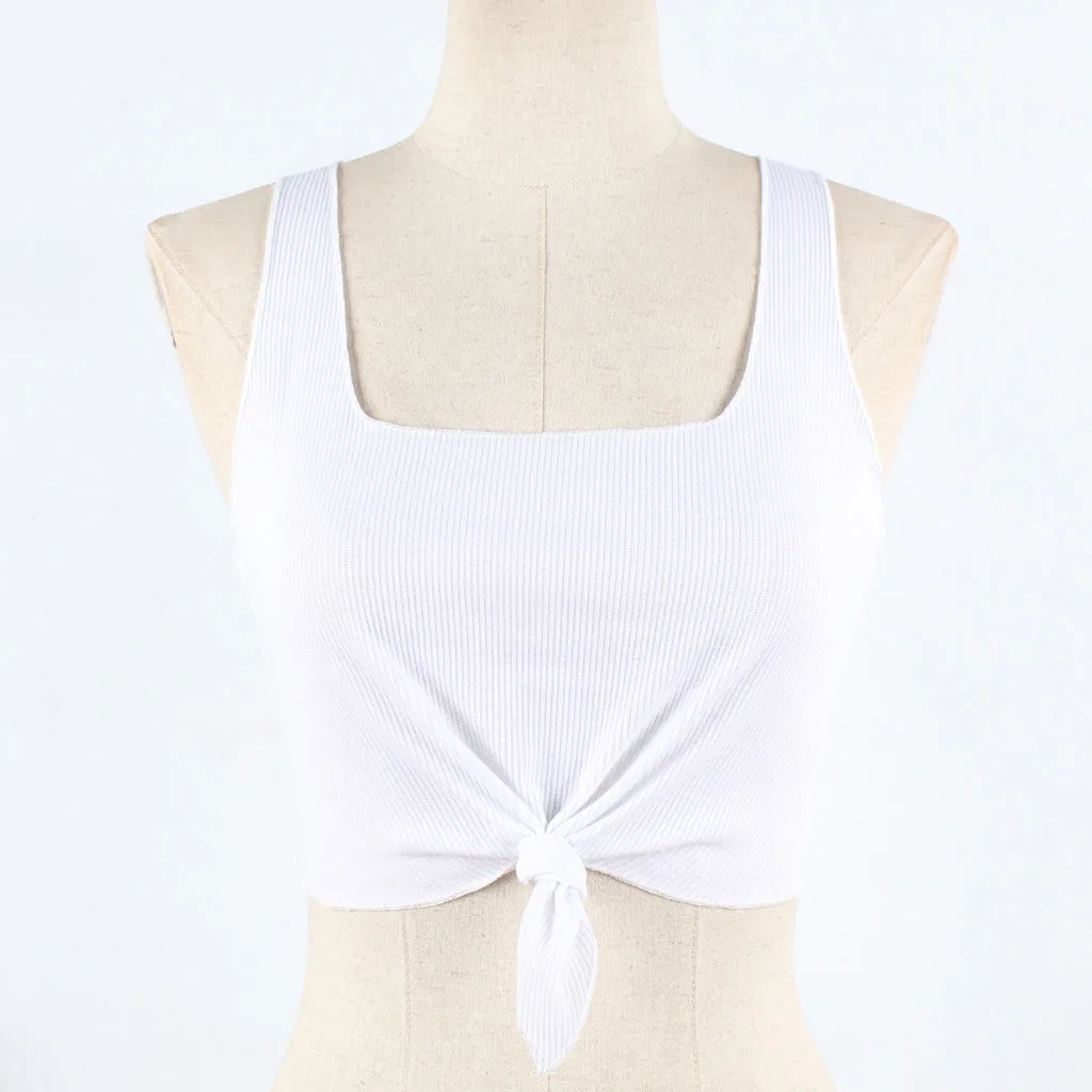 Особенности: сексуальный жилет, короткий, круглый вырез, однотонный, бандажный топ на бретелях, жилет без рукавовОднотонная пикантная одеждаСтильный и модный дизайн; Летние повседневные топы.