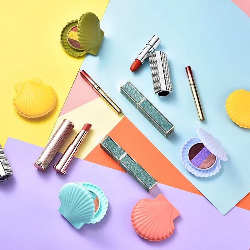 2 шт./компл. Сиси мерцающие тени для век Палитра градиент пигментарный порошок конфеты в виде ракушки стиль с матовые губные помады Черная тушь для ресниц AC178