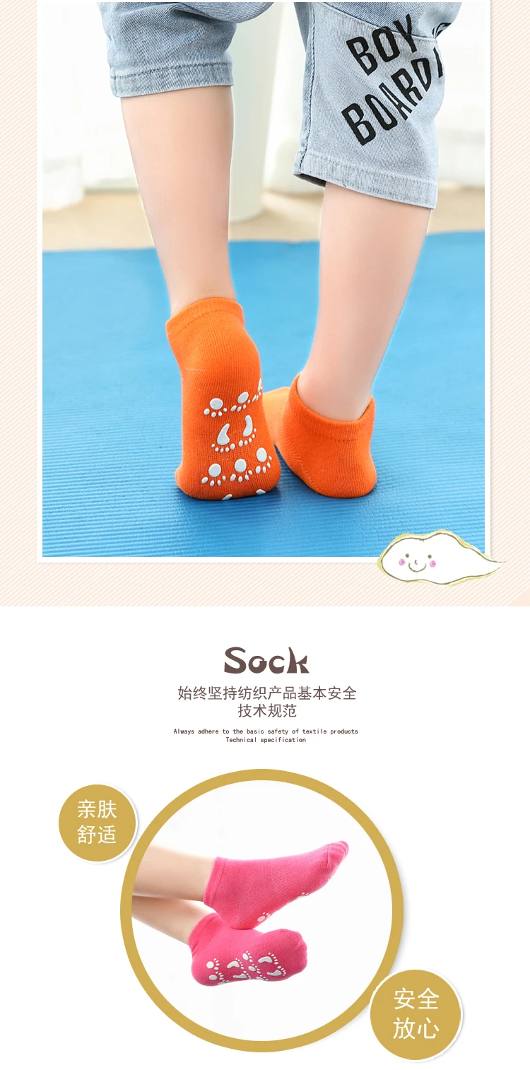 Карамельный цвет хлопок Детские носки нескользящие резиновая подошва носки пальто с капюшоном для девочек на весну-осень для маленьких мальчиков, детская теплая носки-тапочки для От 1 до 11 лет