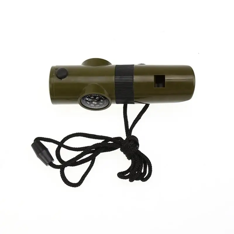 7 в 1 свисток в наборе: свисток, компас, термометр, светодиодный фонарик, увеличительное стекло, рефлектор и маленький контейнер