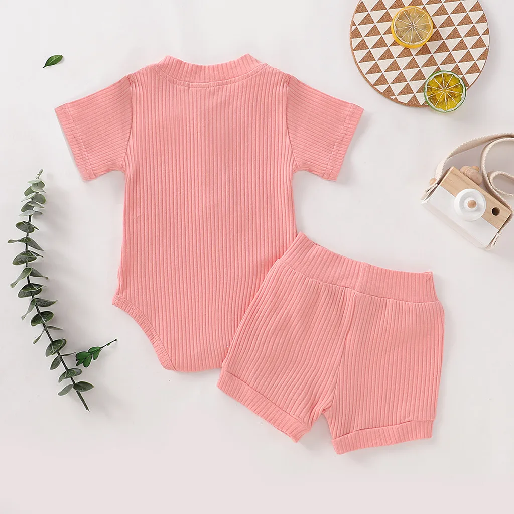 Однотонный комбинезон с короткими рукавами для маленьких мальчиков и девочек, боди + комплект с шортами