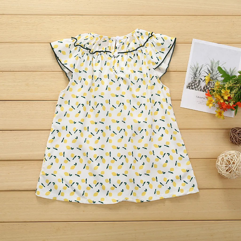 Детская одежда для девочек Летняя футболка с короткими рукавами с цветочным принтом и кисточкой для принцесс платье для танцев