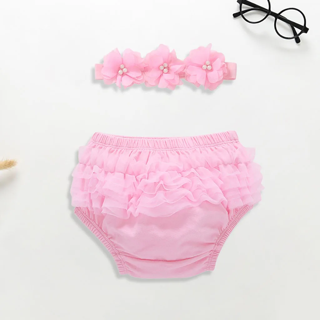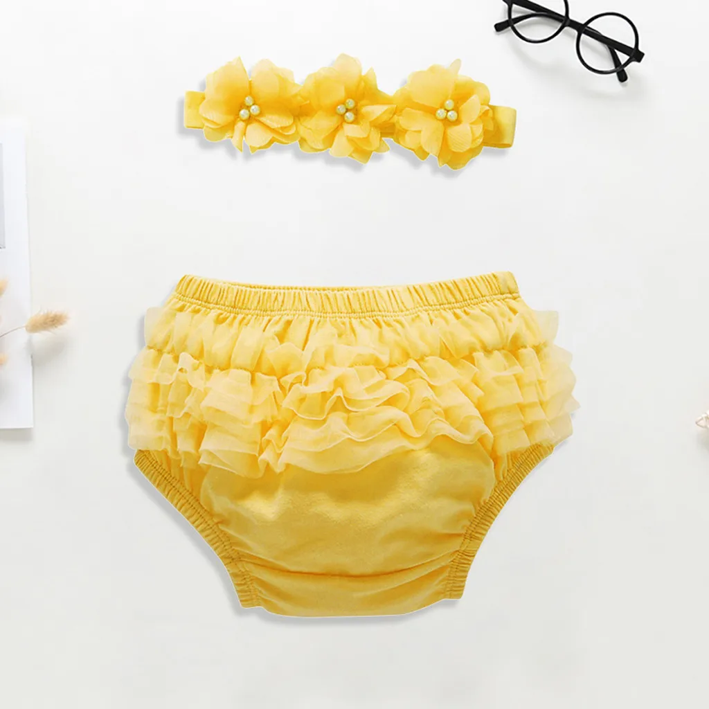 Шорты из тюля с оборками и эластичной резинкой на талии для новорожденных и маленьких девочек; Повязка на голову
