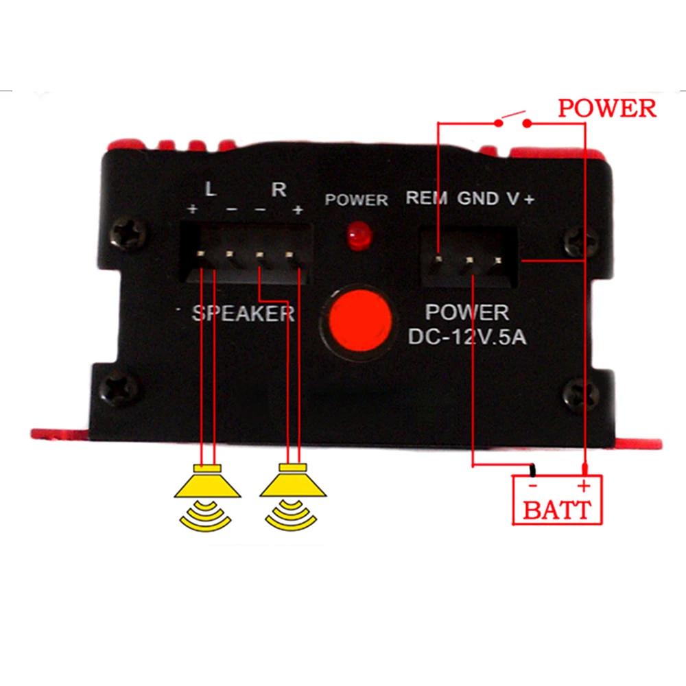 Выход мощность: Pout = 20 Вт + 20 Вт @ RL = 2Ω на DC14.4V 1K КНИ = 10%