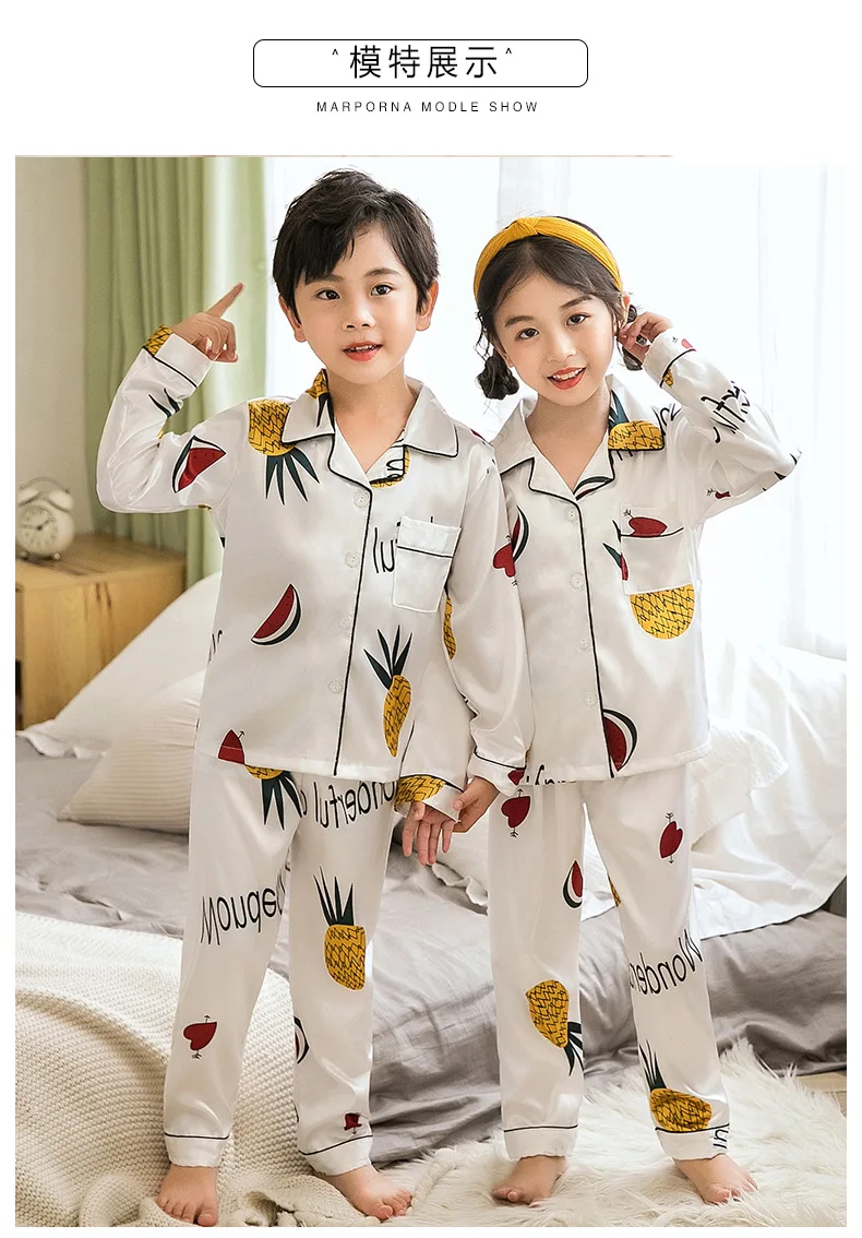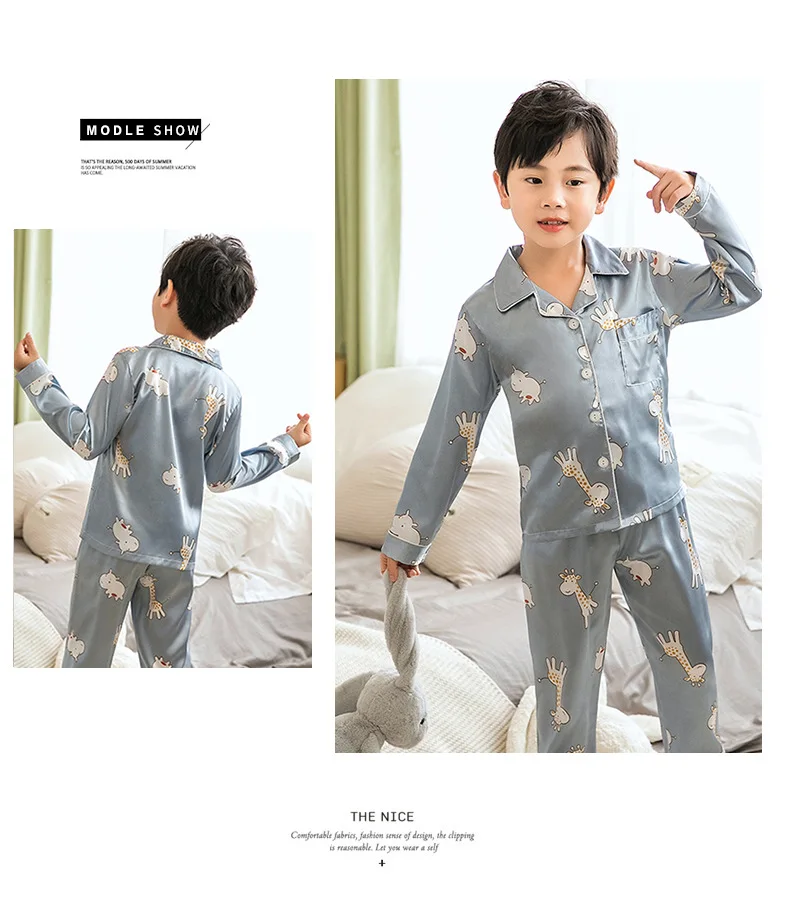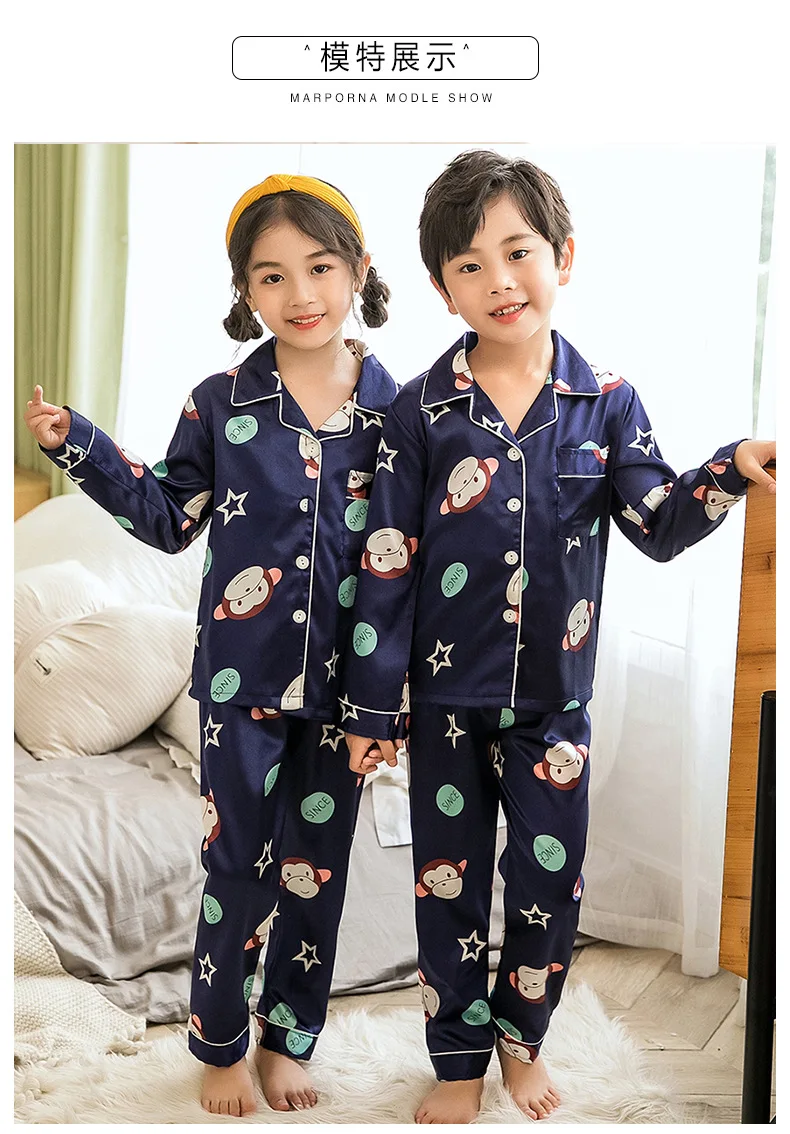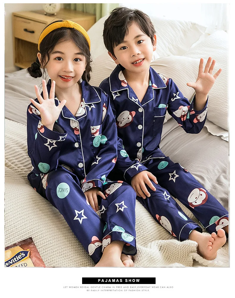 Детская атласная пижама с мультяшным принтом для мальчиков и девочек на весну