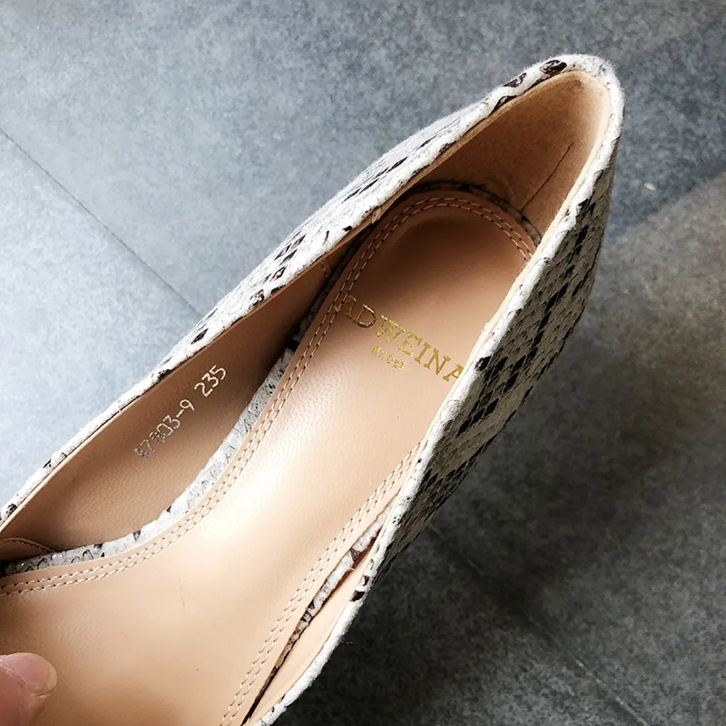Осенние женские ботинки с острым носком; обувь на высоком каблуке с закрытым носком из змеиной кожи