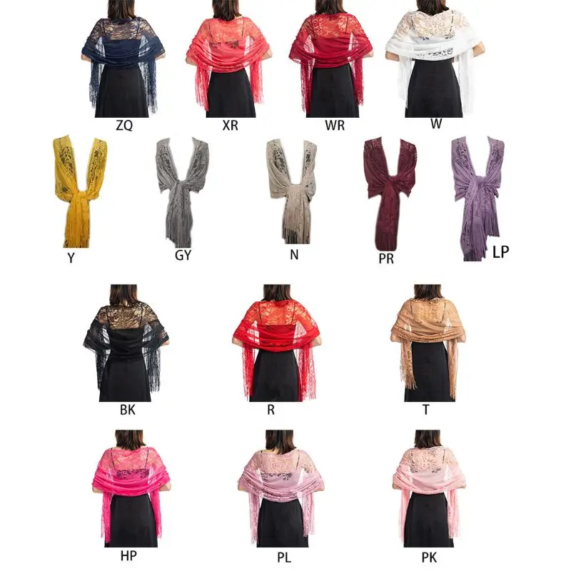 Шаль 1920 года, однотонная, ажурное вязаное крючком Прозрачное цветочное кружево, с длинной бахромой и кисточками, 15 цветов на ваш выбор.