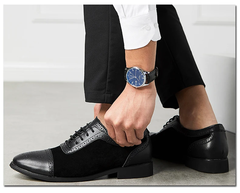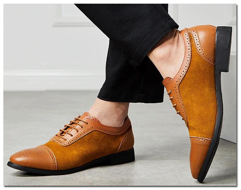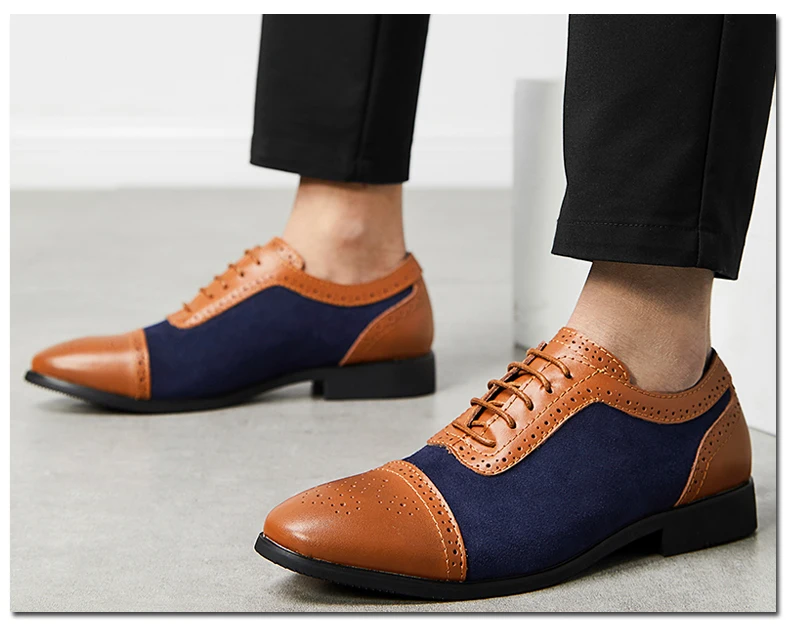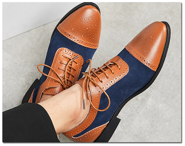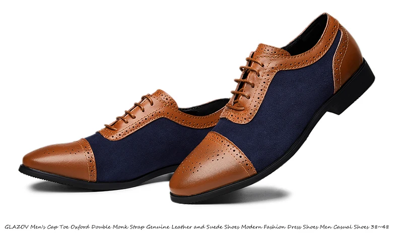 Туфли-оксфорды мужские из натуральной кожи и замши с двойным ремешком 38-48 | Обувь