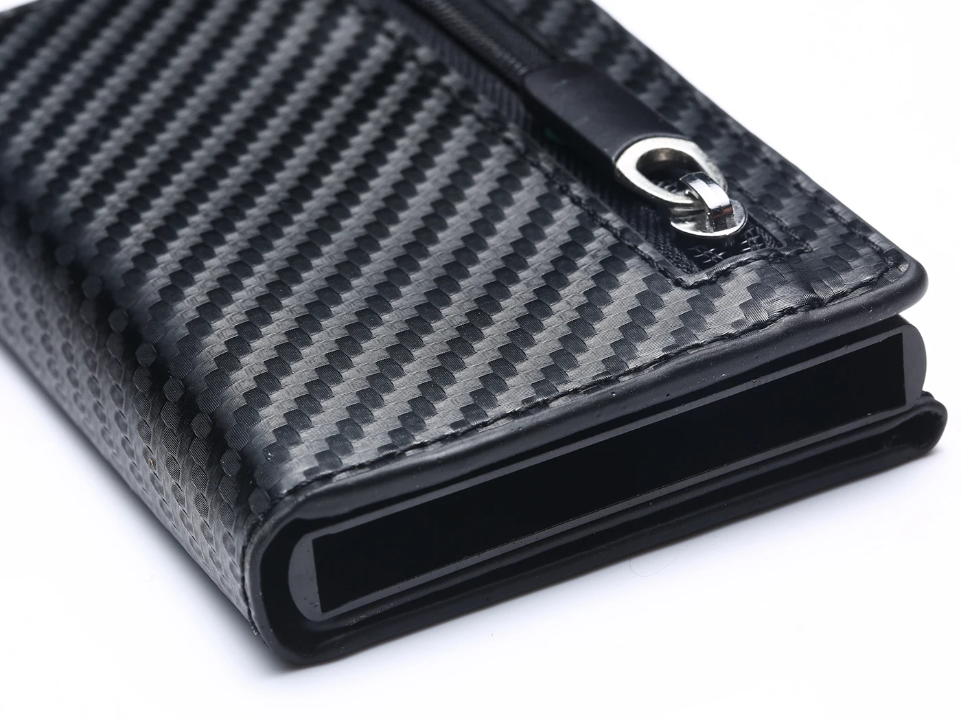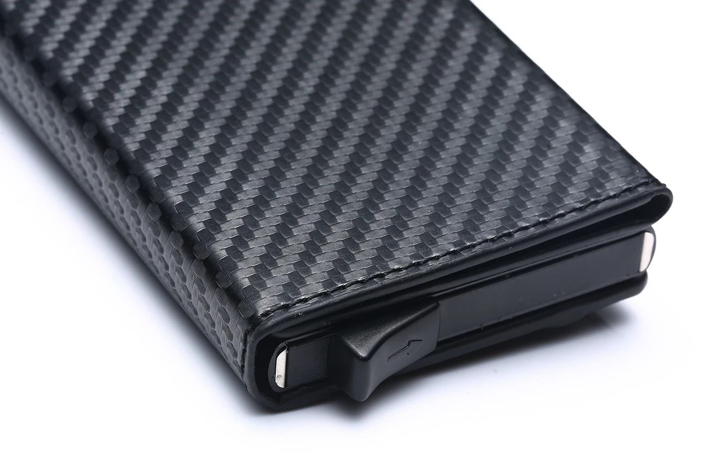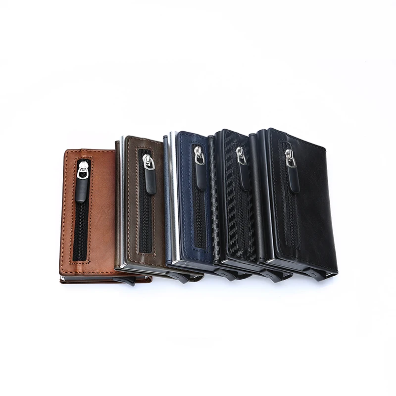 Держатель для карт, новинка 2019, алюминиевая коробка, кошелек для карт, RFID, из искусственной кожи, чехол для карт, магнит, карбоновое волокно, кошелек для монет