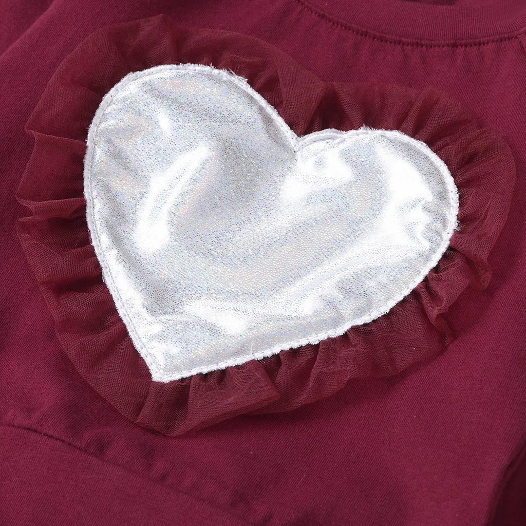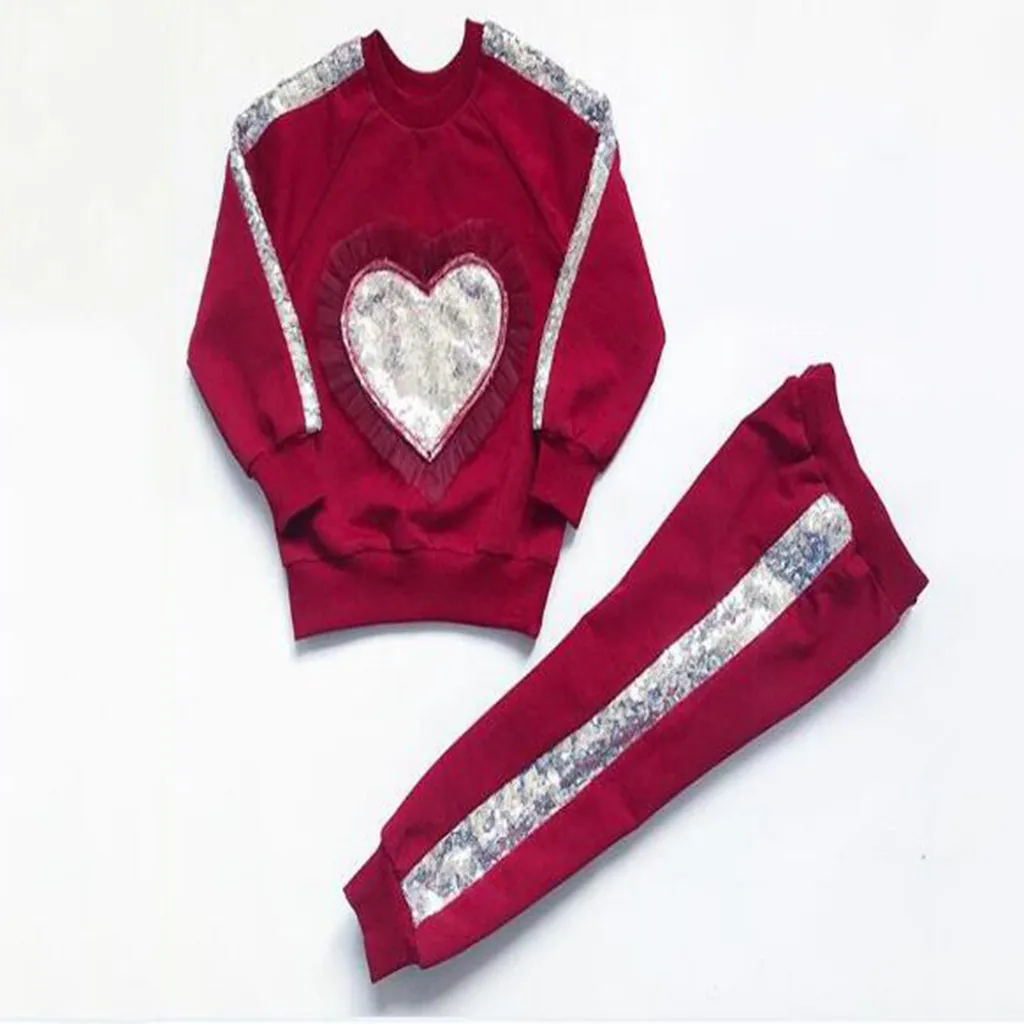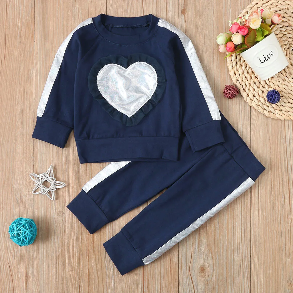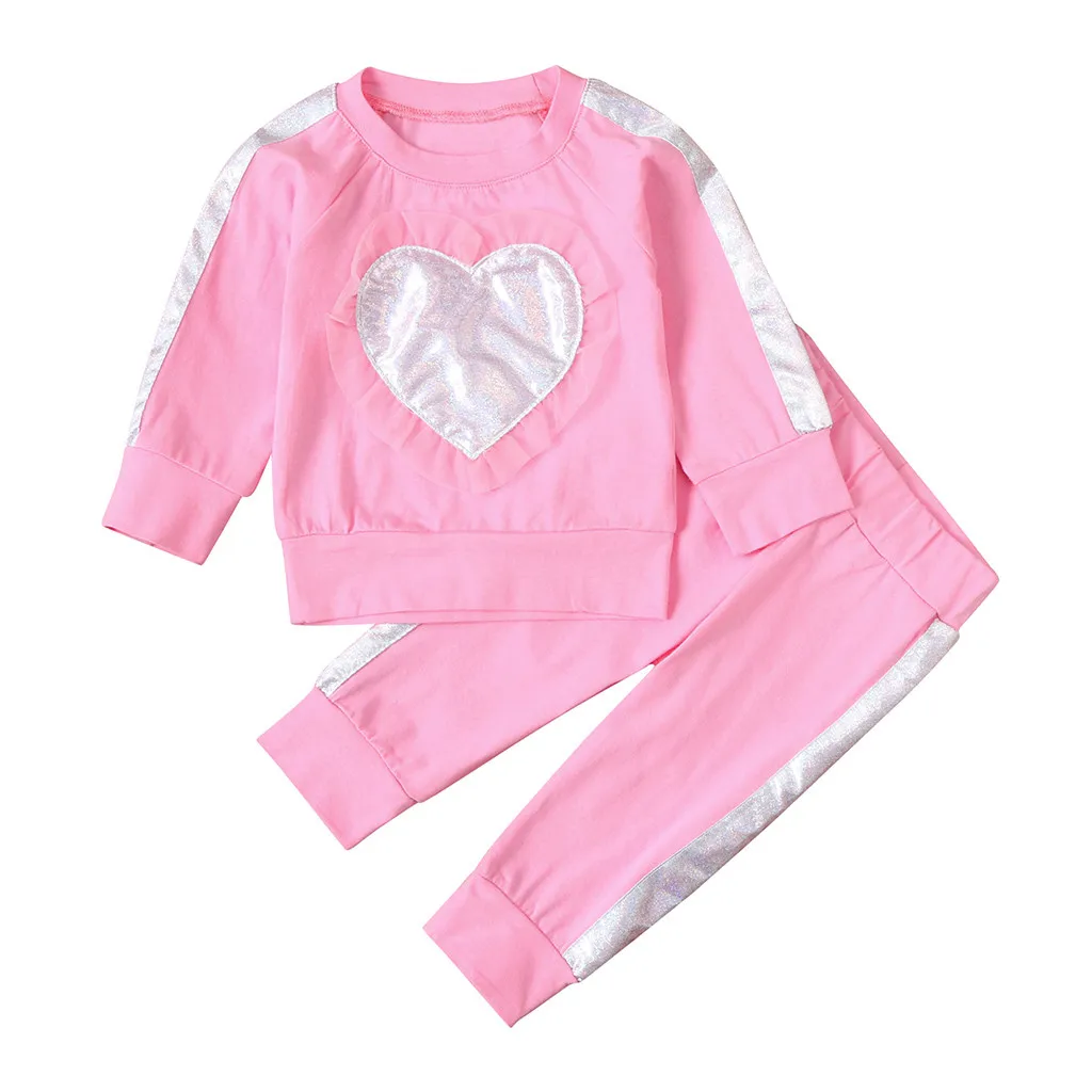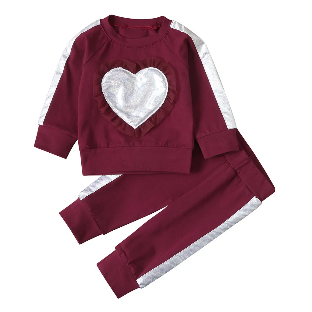 Комплект из 2 предметов для новорожденных и маленьких девочек; свитер с рюшами и сердечками; комплект со штанами и топом