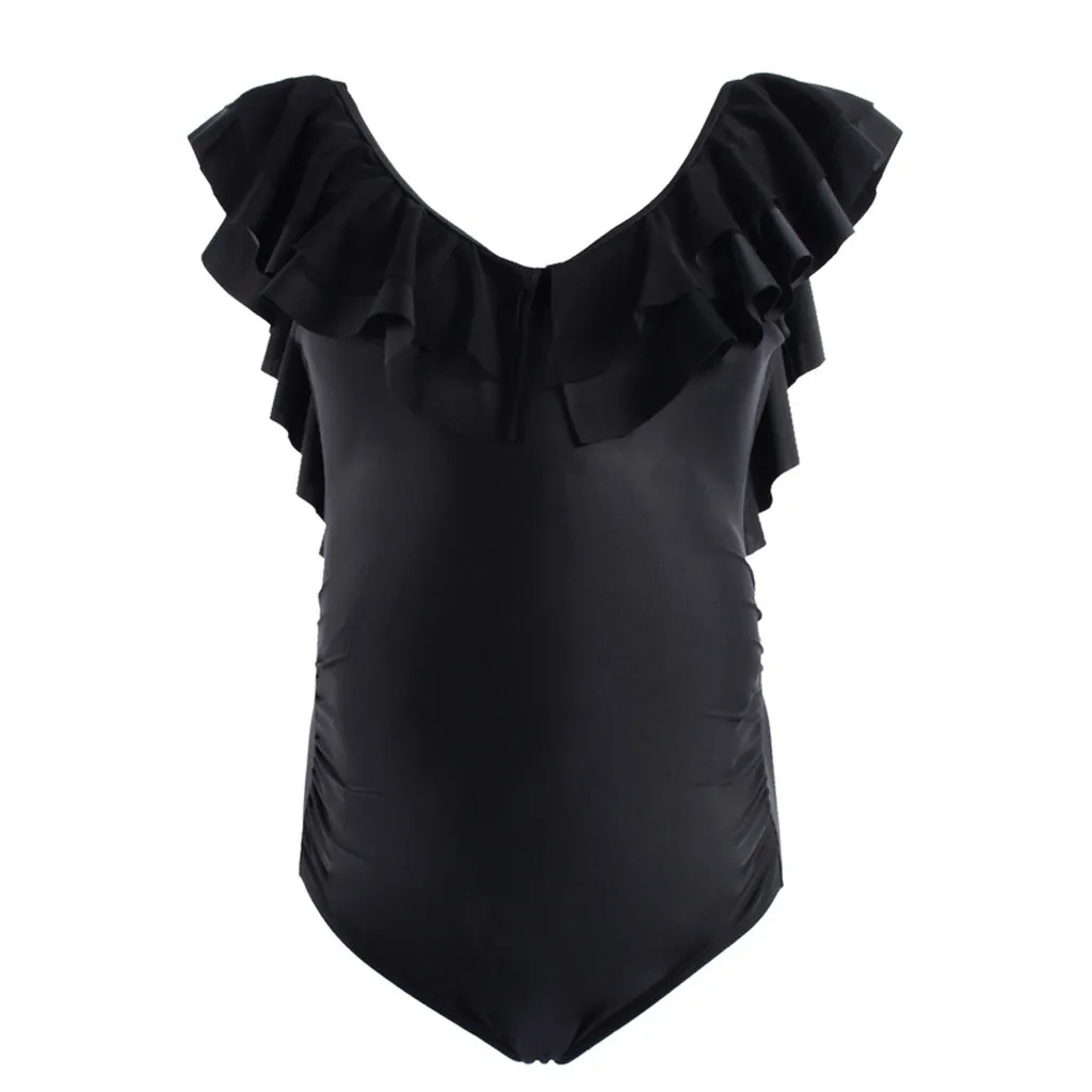 Женский купальник-бикини с оборками для беременных, однотонный Купальник для беременных, бикини с высокой талией