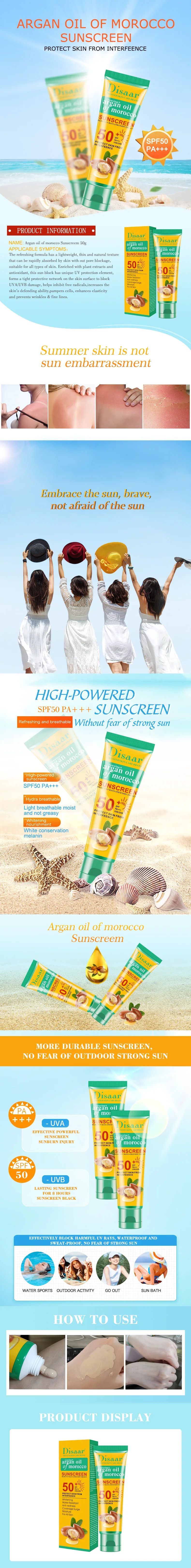 Новинка, аргановое масло, крем для лица, солнцезащитный, 50 г, SPF50, без масла, радикальный Мусорщик, антиоксидант, UVA/UVB, солнцезащитный крем, отбеливающий крем для кожи